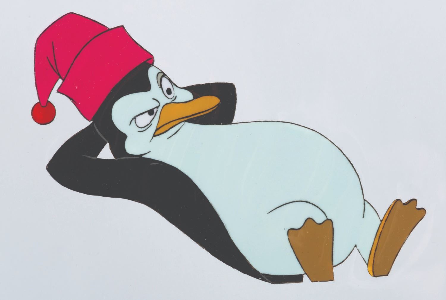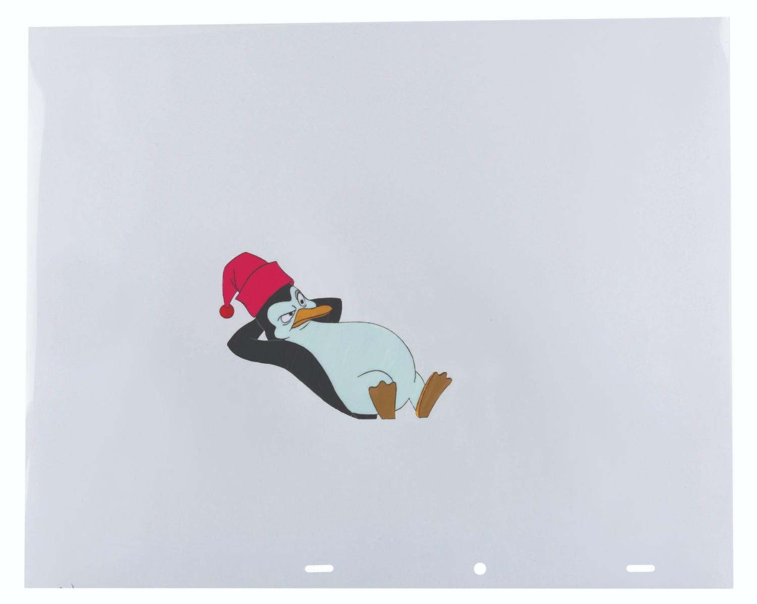(Disney, 1970 ) An original production cel of Pablo the Penguin in the “Nature’s Strangest Oddballs” episode of “The Wonderful World of Disney.” With a character size of 3.75” x 5.25” on a 12.5” x 15.5” cel, the piece displays in very good condition with spots of paint loss and scratches on the cel.