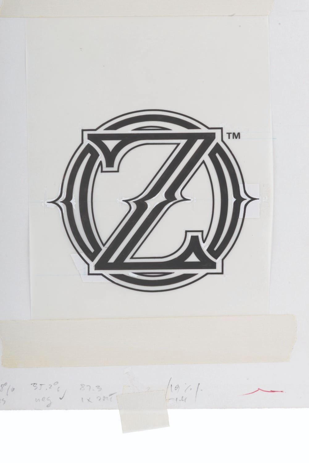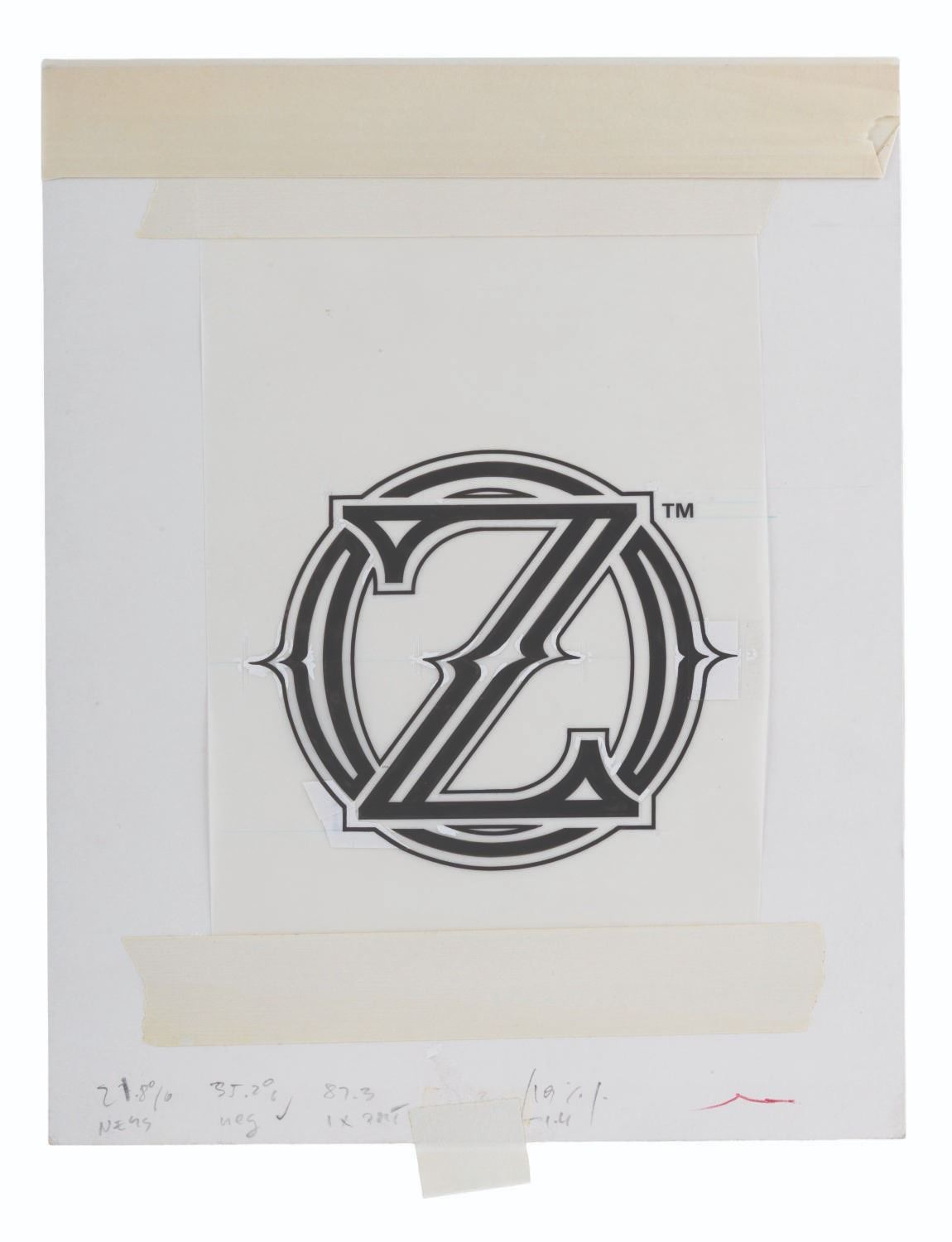 (Landmark Entertainment, 1990s) An original logo drawing for a proposed, Kansas-based Wizard of Oz theme park. Landmark Entertainment, the creators of Terminator 2: 3D, Star Trek: The Experience, and Jurassic Park: the Ride, became involved and created concepts and artwork for the unrealized park, including this hand-drawn logo artwork. Accomplished in ink on velum, the image measures 4" x 4.5" on an 8" x 10" art board and is in very good condition with pencil markings and tape.