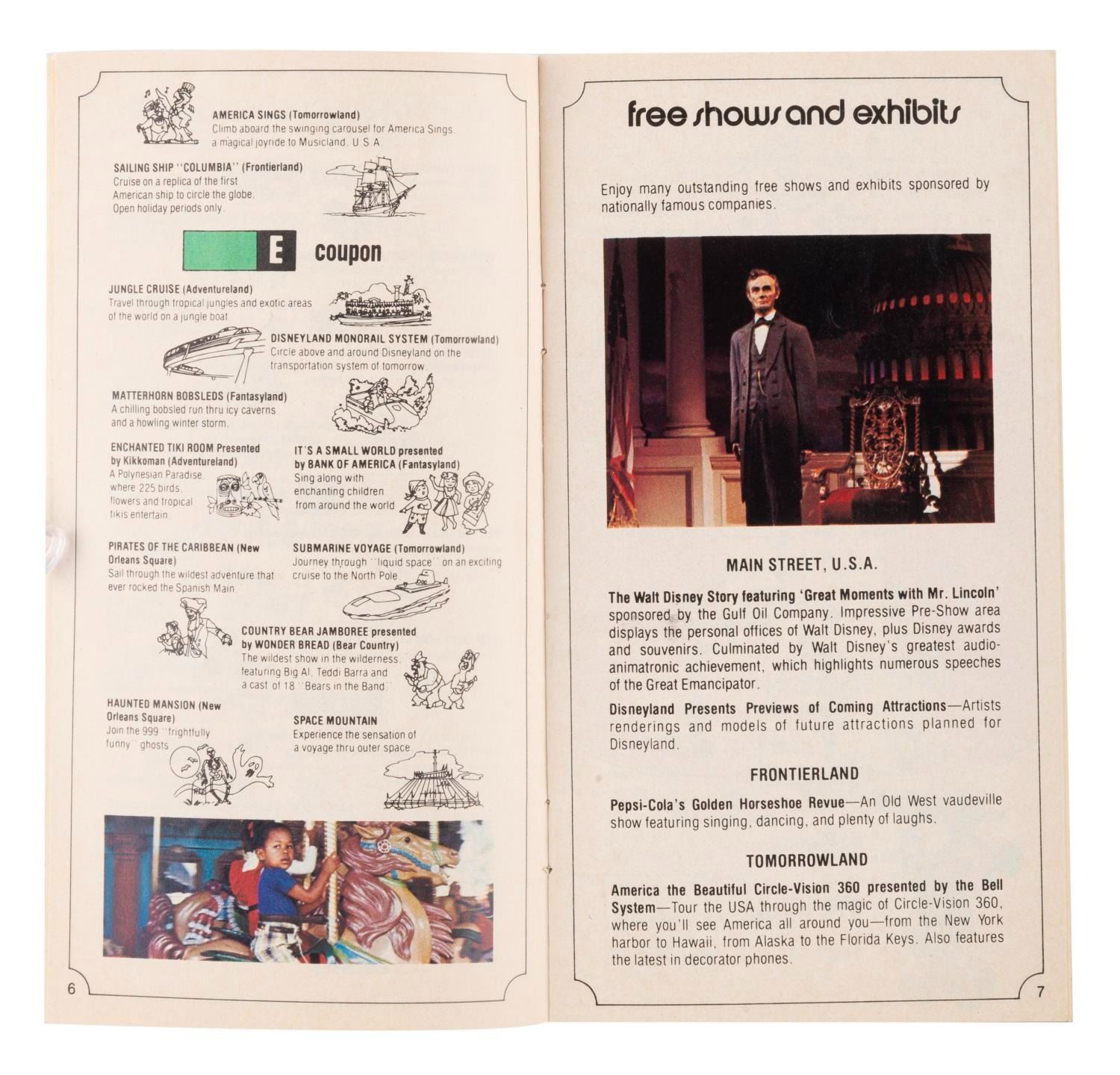 (Disneyland, 1978) A Your Guide to Disneyland from the summer of 1978, which provided Guests with maps of the Park and information on ticket books, attractions, dining, parades, and entertainment. Measuring 7" x 3.75", the 25-page book is in very good condition with light edge wear and creasing, and light discoloration.