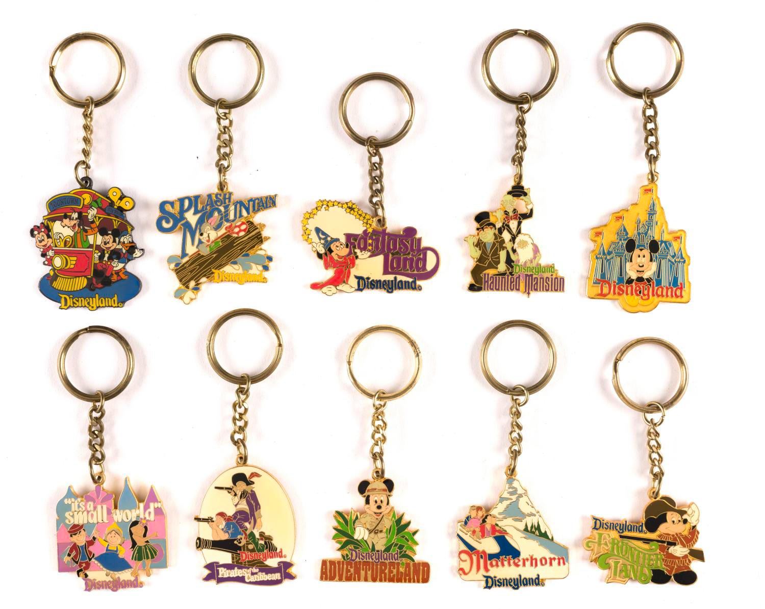 (Disneyland, 2000s) An assortment of ten keychains featuring lands and attractions from Disneyland. All are in fine unused condition.