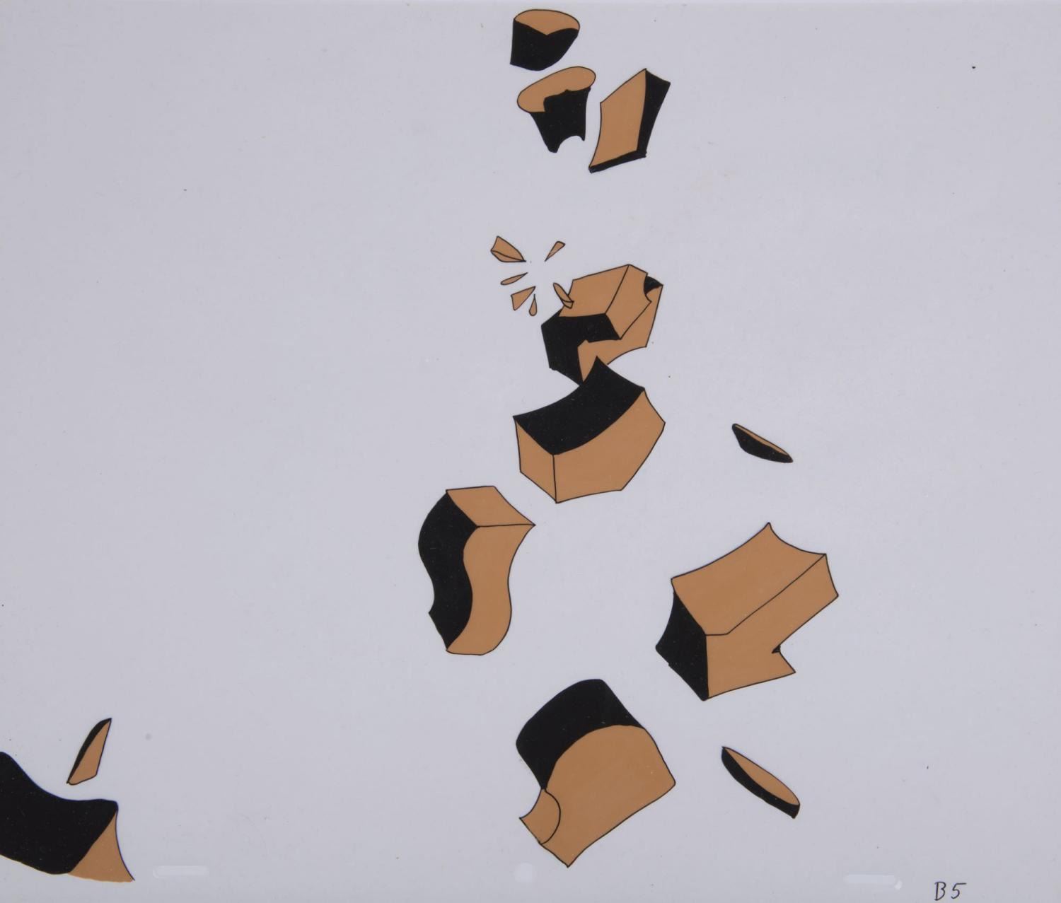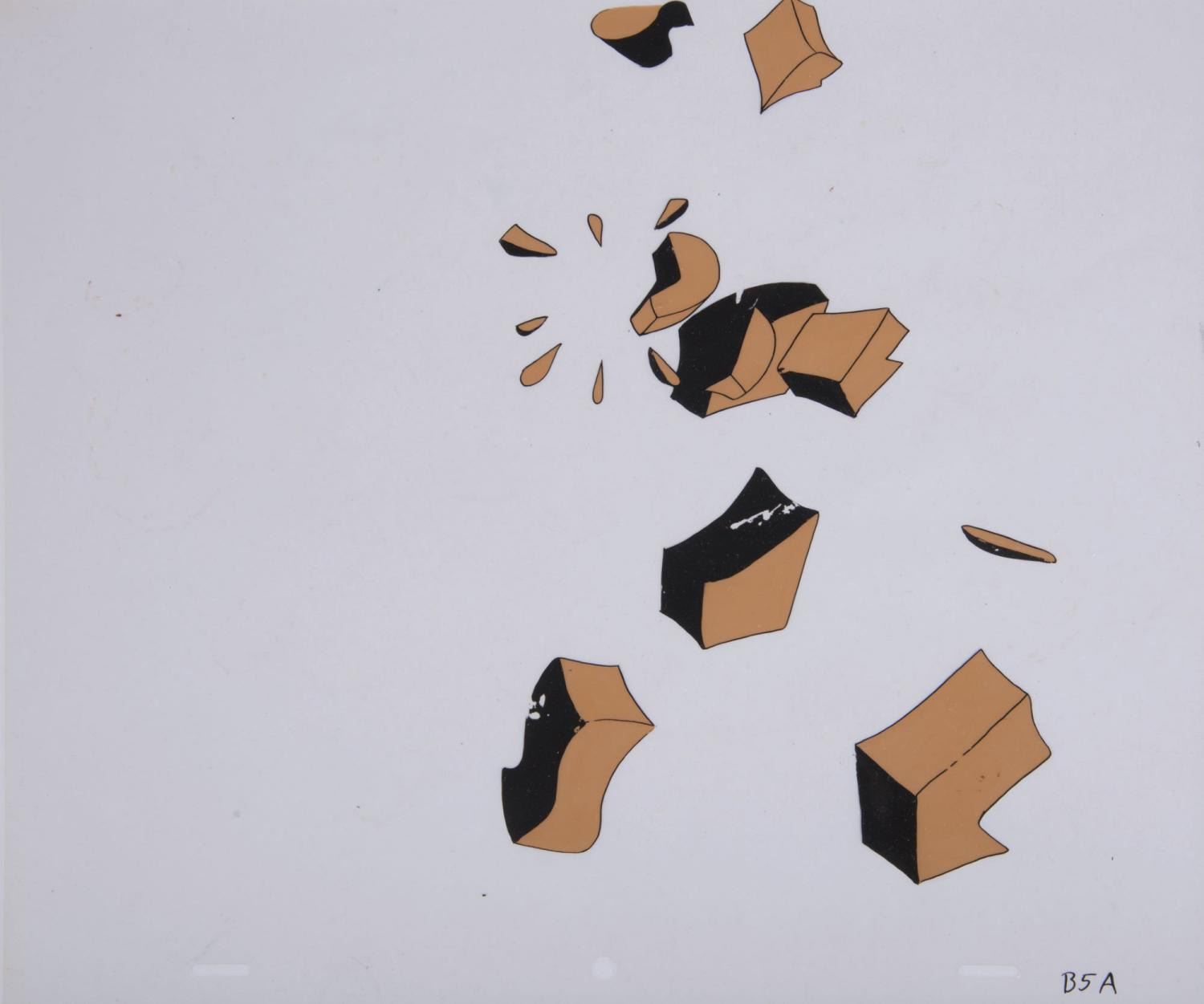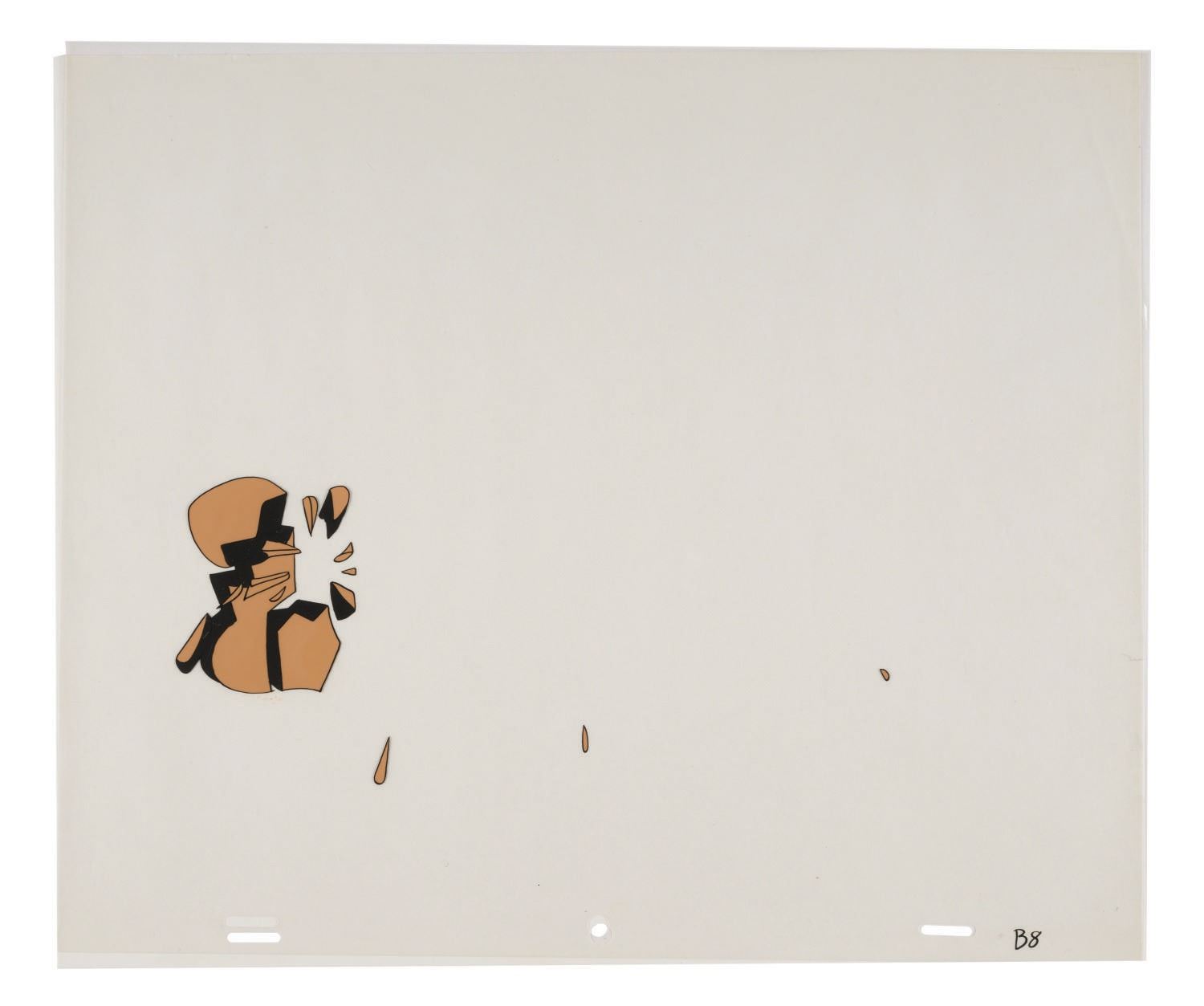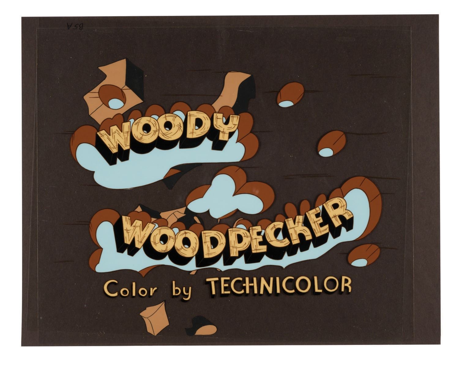 (Universal, 1970s) A collection of (4) cels used in production of a Woody Woodpecker title sequence. Included are the main title cel and three cels of falling wood pieces. Each cel measures 12.5"x10.5" and all in very good condition with some paint loss to one of the wood cels.