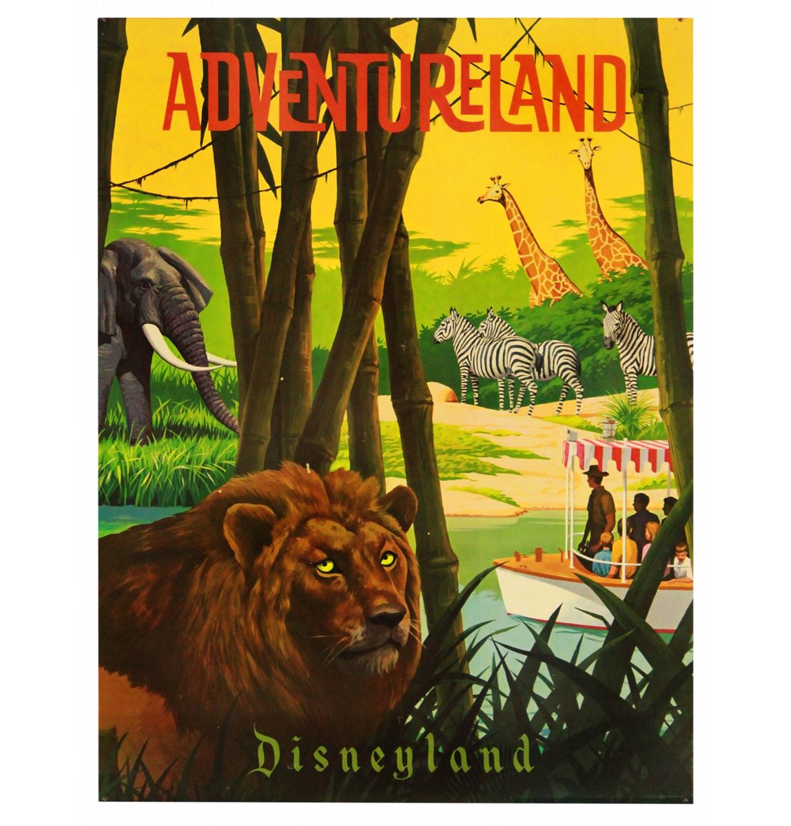(Disneyland, 1966) A very scarce “near-attraction” poster from the Summer of 1966. This beautiful 30 x 22 in. printed poster was part of a set of (6) images that were actually displayed in the park as attraction posters, but also formally sold individually at the Main Street Emporium. They were only available that Summer and as such, are very hard to come by. In very good condition with minor wear, some pin holes and light foxing.