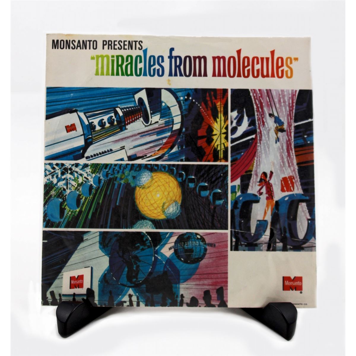 (Disneyland, 1967) An extremely rare 7 x 7 in. promotional record for the Sherman Brother ”Miracles From Molecules” theme from the Monsanto presentation of Adventure Thru Inner Space. Part of the 1967 “New Tomorrowland”, this attraction was and is iconic of 1960s Disneyland. These records were promotional gifts that came as part of the 1967 “New Tomorrowland” press kit. In its original, colorfully illustrated record sleeve.