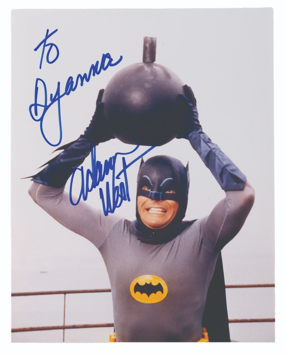 (20th Century Fox, 1966) A publicity photo from the 1966 "Batman " film, signed by Adam West (Batman). Some days, you just can’t get rid of a bomb. Measuring 8 " x 10 ", the autographed photo is in fine condition.
