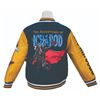 (Disney, 2024) A 75th anniversary “The Adventures of Ichabod and Mr. Toad” varsity-style letterman jacket, released at the D23 Fan Expo. The jacket features embroidered patches of Toad, a 49” for the film's original release, “and Mr. Toad” lettering on the right sleeve, and a Headless Horseman patch on the back. The inner lining is patterned with colorful scenes from the film featuring Toad, Ratty, Moley, MacBadger, Ichabod, and the Headless Horseman. Labeled a size XL, the faux wool and leather jacket is in very good condition with light wear and creases on the Headless Horseman’s satin cape.