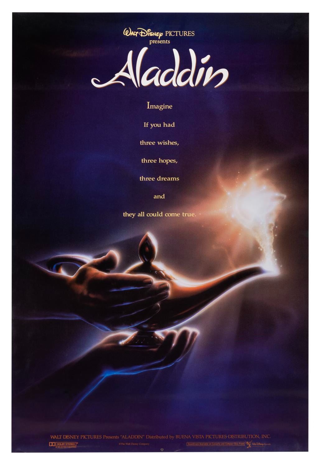 (Disney, 1992) A one-sheet for the original theatrical release of "Aladdin." Measuring 27" x 40", the poster is in very good condition with waviness from storage.
