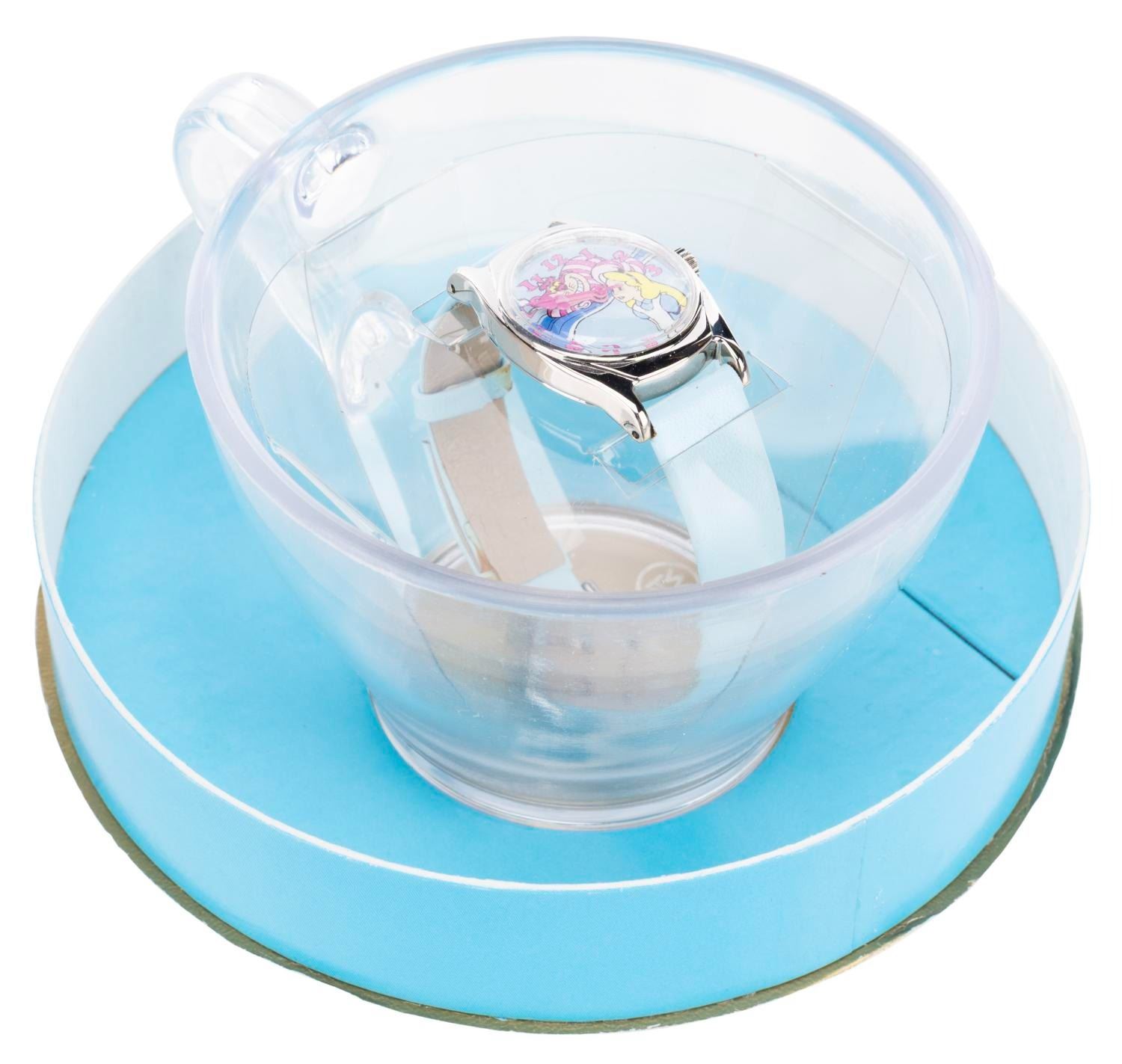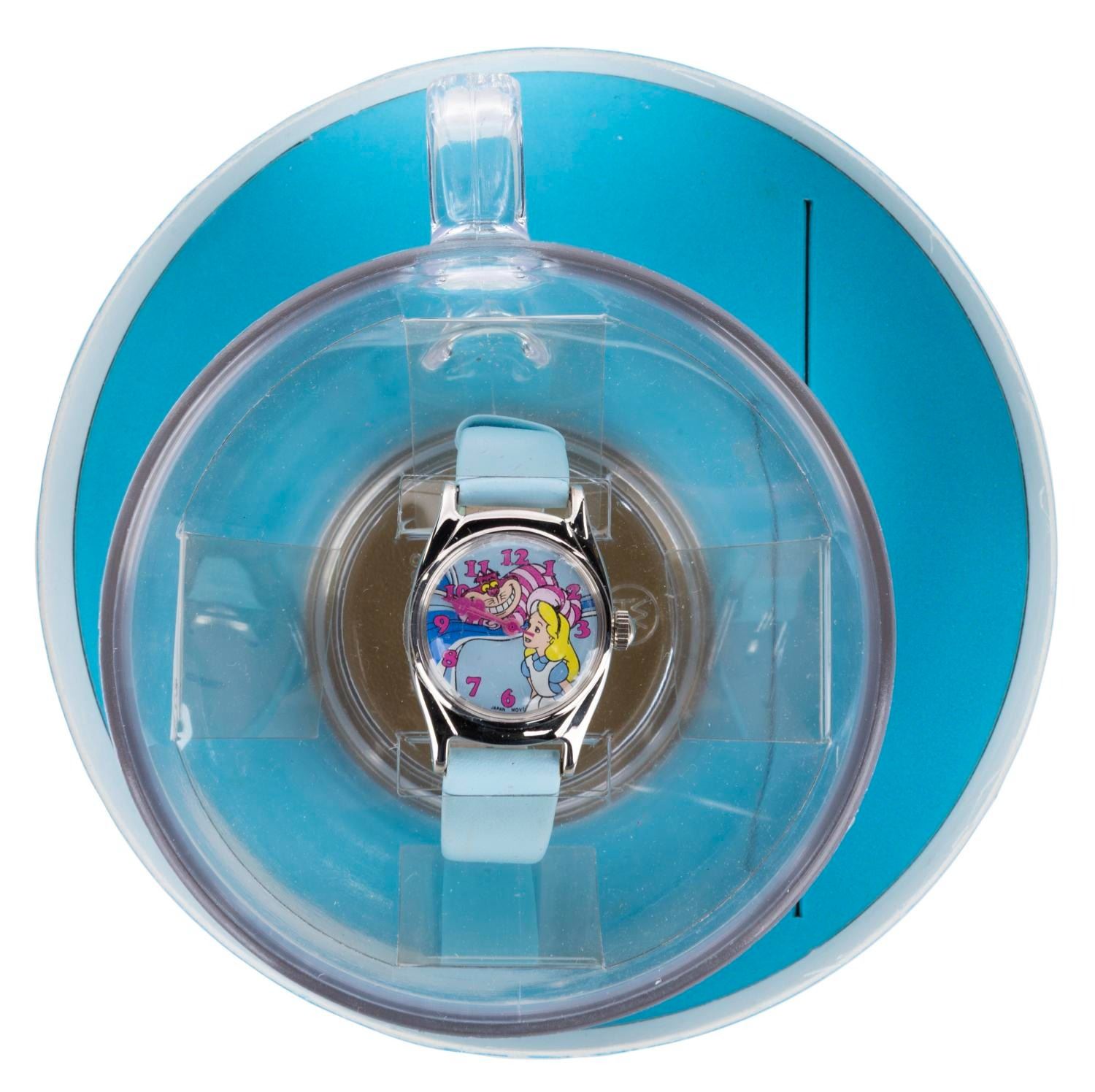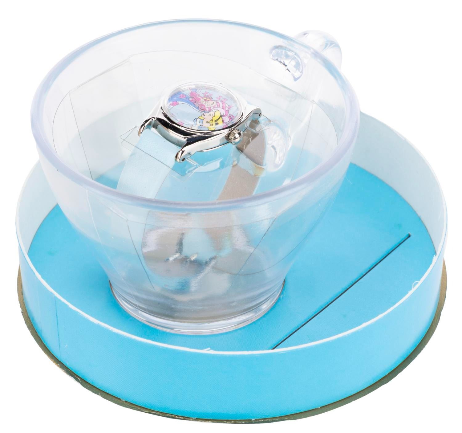 (Disney, 1990s) An "Alice in Wonderland" quartz watch, part of The Disney Store's Nostalgic Time collection, displayed in a plastic teacup. The watch did not work when tested, likely requiring repair or a new battery. The watch comes with its original case and is in very good condition with light wear.