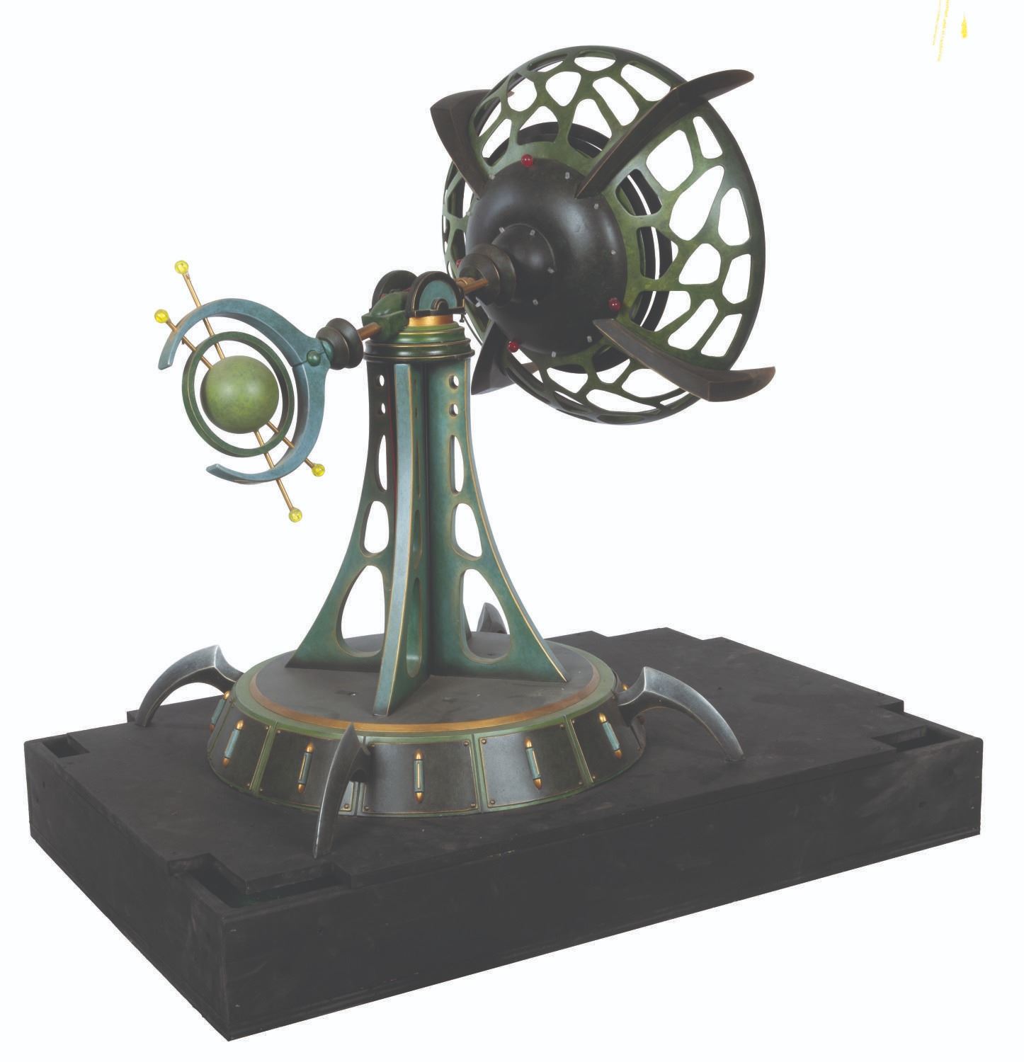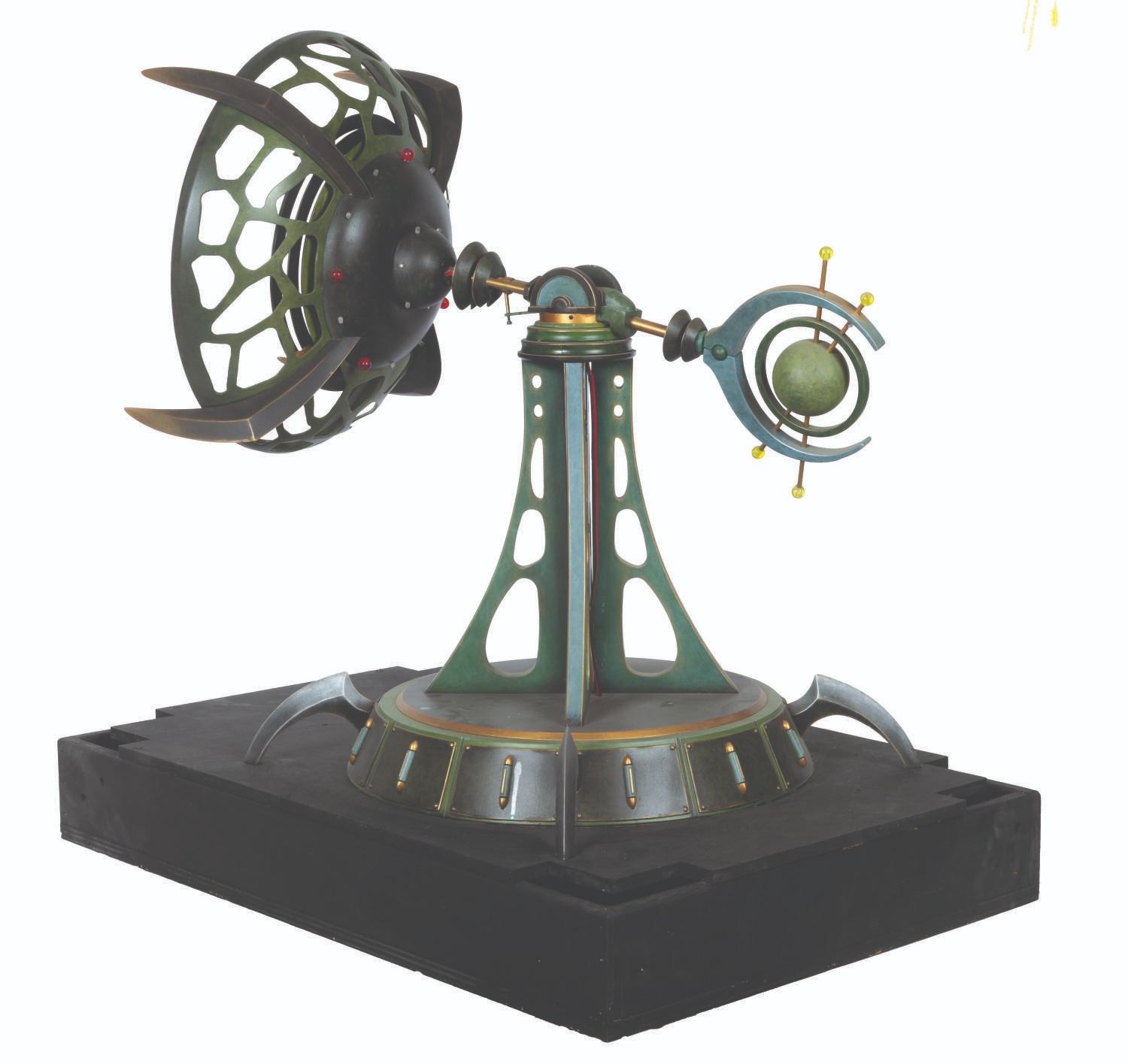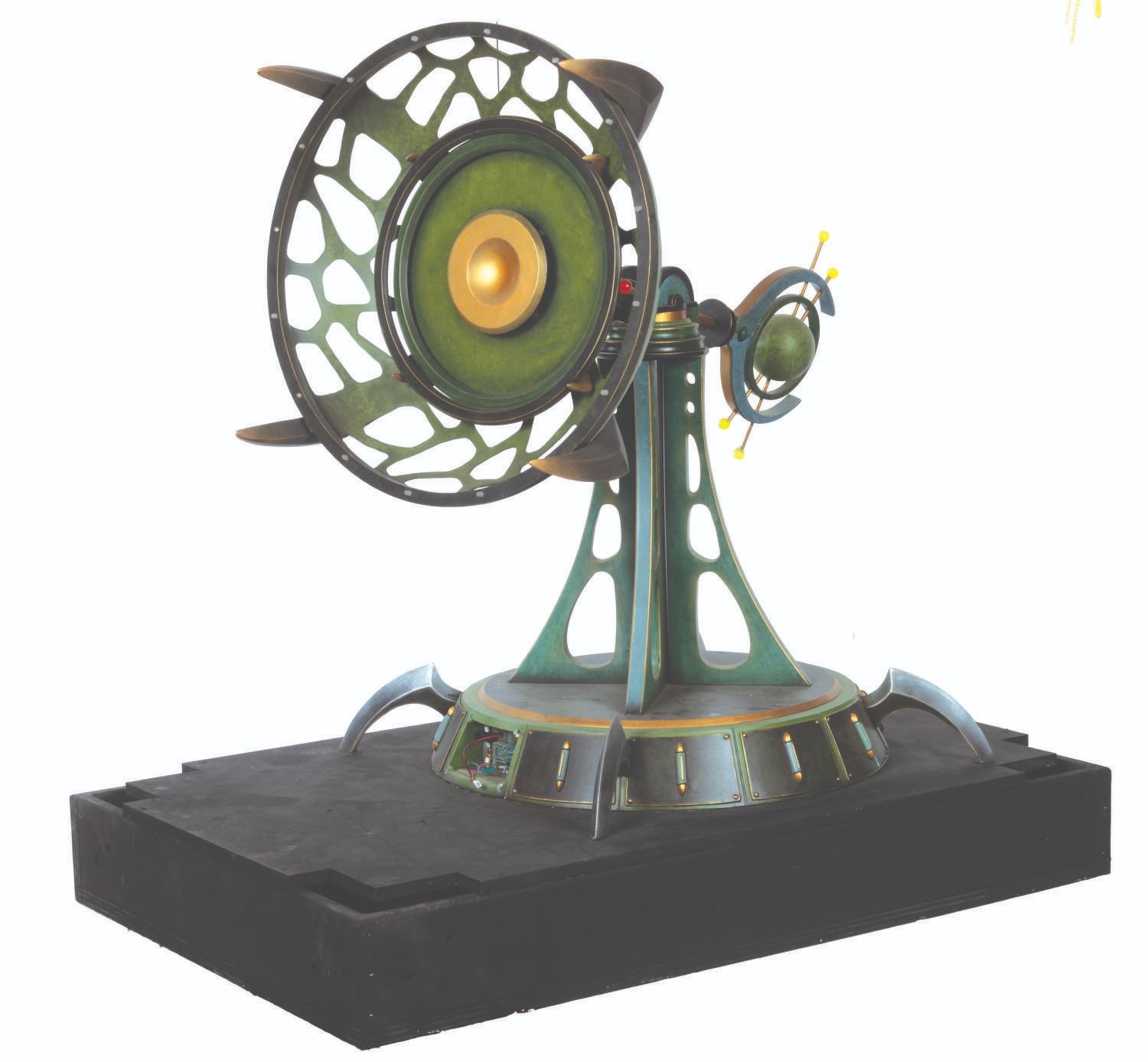(Netflix, 2020) A Gyrotron prop from “Alien Xmas.” This is the device built by X at the North Pole to eliminate Earth's gravity, allowing the Kelpt aliens to collect all of the planet’s valuables as it floats into orbit. Measuring 28.25” x 9.25” x 29.75” and 35” tall mounted to a base, the Gyrotron is in very good condition with light wear from production use. This item requires special shipping arrangements. Please inquire before bidding.