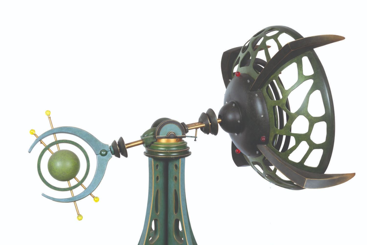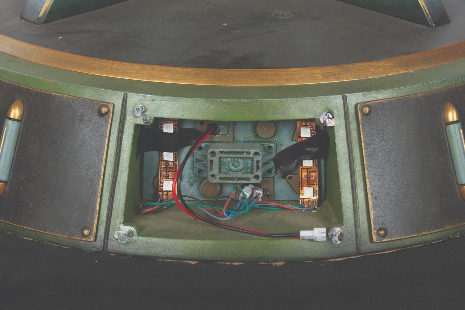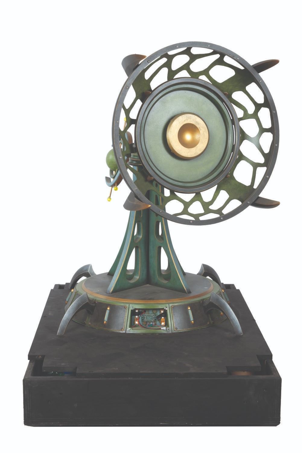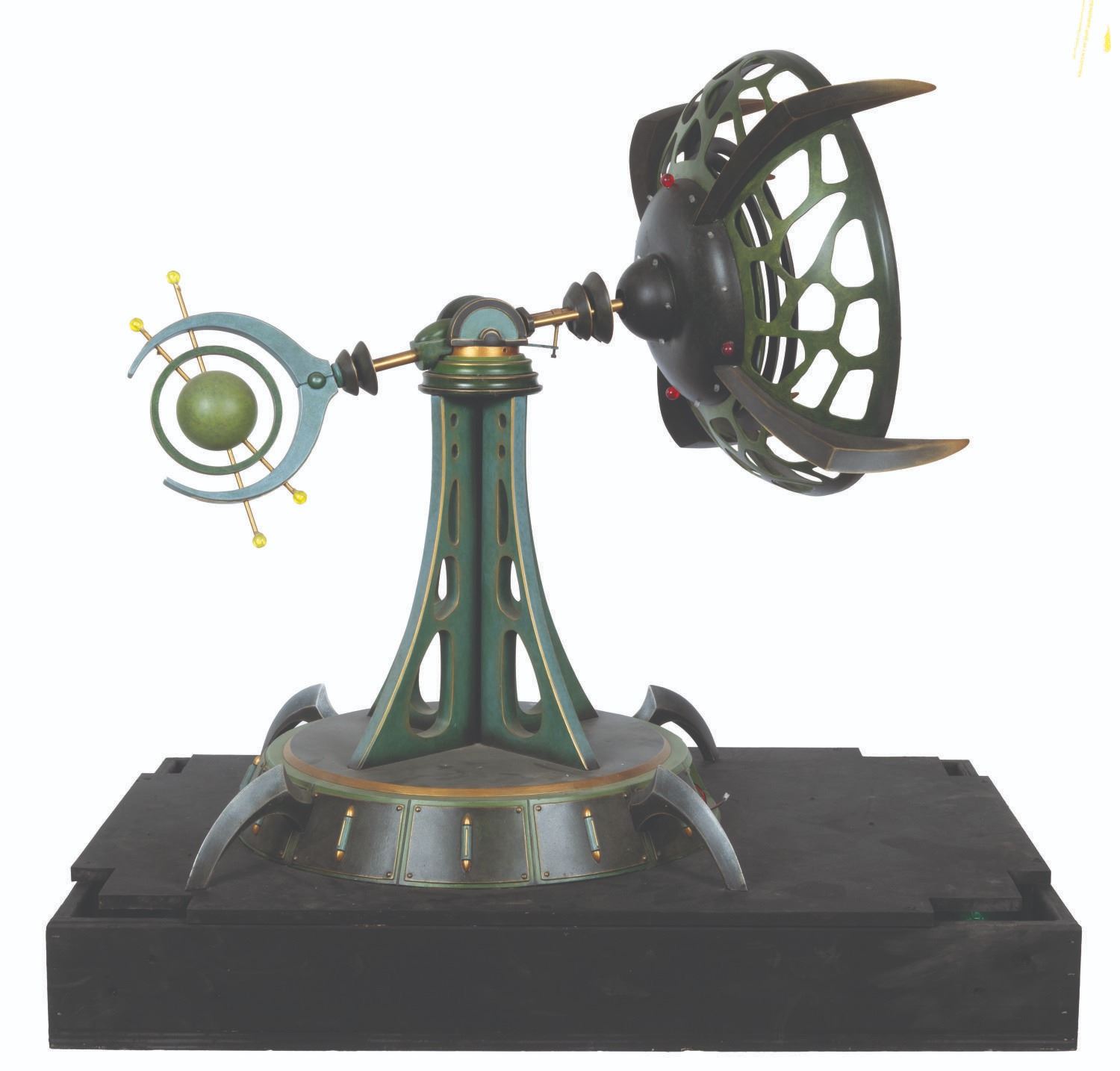 (Netflix, 2020) A Gyrotron prop from “Alien Xmas.” This is the device built by X at the North Pole to eliminate Earth's gravity, allowing the Kelpt aliens to collect all of the planet’s valuables as it floats into orbit. Measuring 28.25” x 9.25” x 29.75” and 35” tall mounted to a base, the Gyrotron is in very good condition with light wear from production use. This item requires special shipping arrangements. Please inquire before bidding.