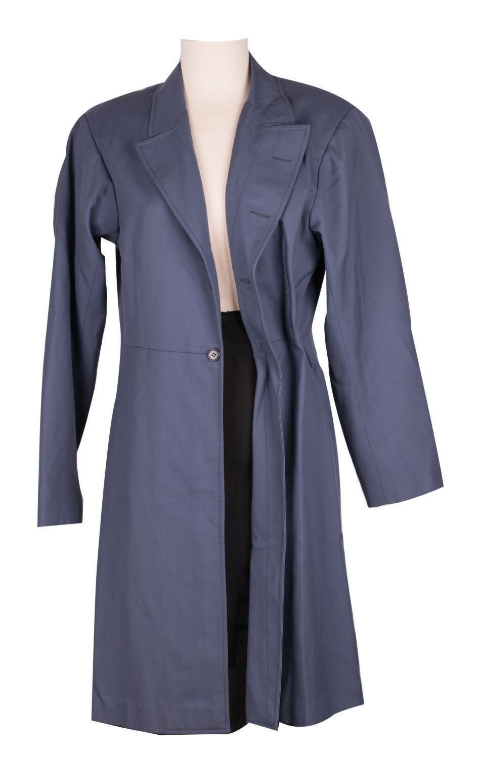 (EPCOT, 1982-2000s) An American Adventure Audio-Animatronics Coat from EPCOT Center at Walt Disney World. This costume coat was created by the Entertainment Costuming Department exclusively for the Alexander Graham Bell Audio-Animatronics figure. The coat prop contains snaps used to attach the coat to buttons on the figure and retains its original property control label and annotation identifying its original location in the show. Measuring approximately 40" long, the piece is in very good condition with wear to textile from park use.