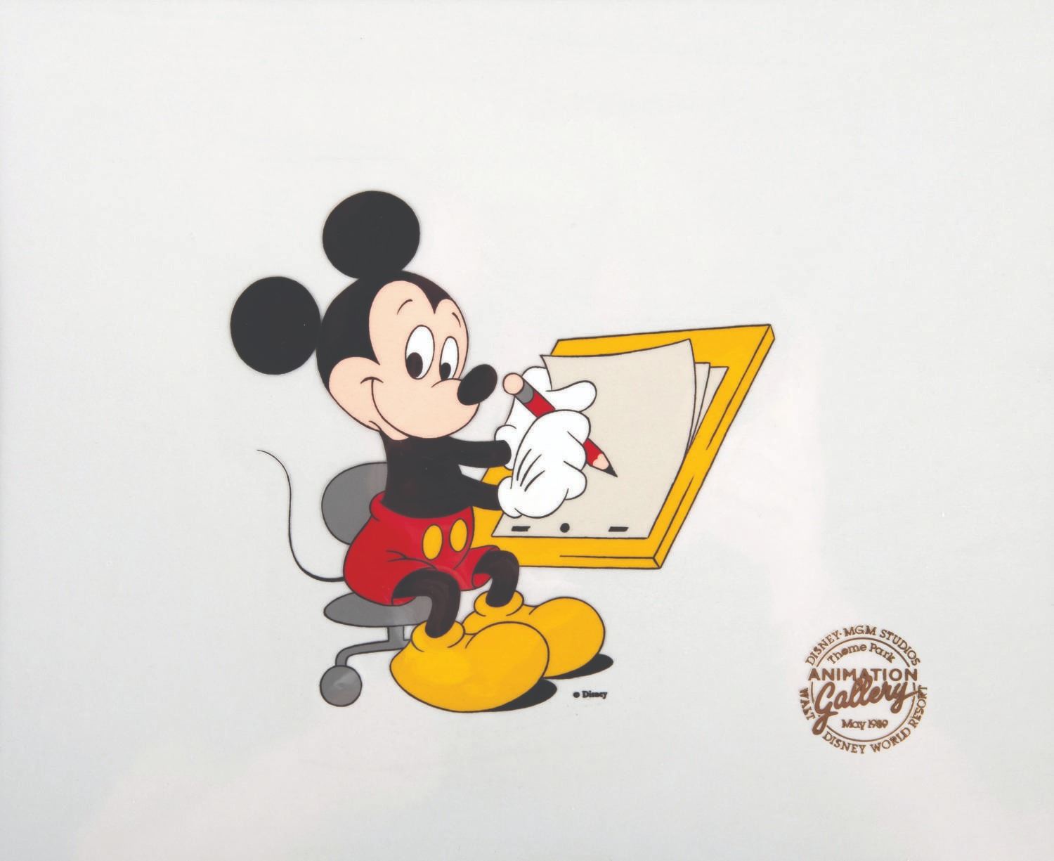 (Disney-MGM Studios, 1989) A souvenir Mickey Mouse serigraph cel from the Theme Park Animation Gallery at Disney-MGM Studios. The piece has a character image size of 5.5" x 5.5" on its 13.5" x 11" cel sheet and is in fine as-new condition.