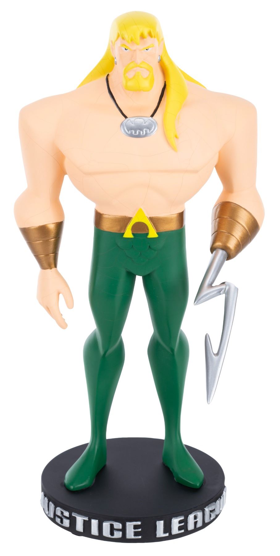 (DC, 2003) A maquette of Aquaman from the Justice League Animated Series. Produced in a limited edition from DC Direct, this maquette is an Artist Proof numbered 52 of 153. Measuring 9.25” x 4” x 3.5” deep, the maquette is in fair condition with significant crazing throughout and a break in the harpoon hand.