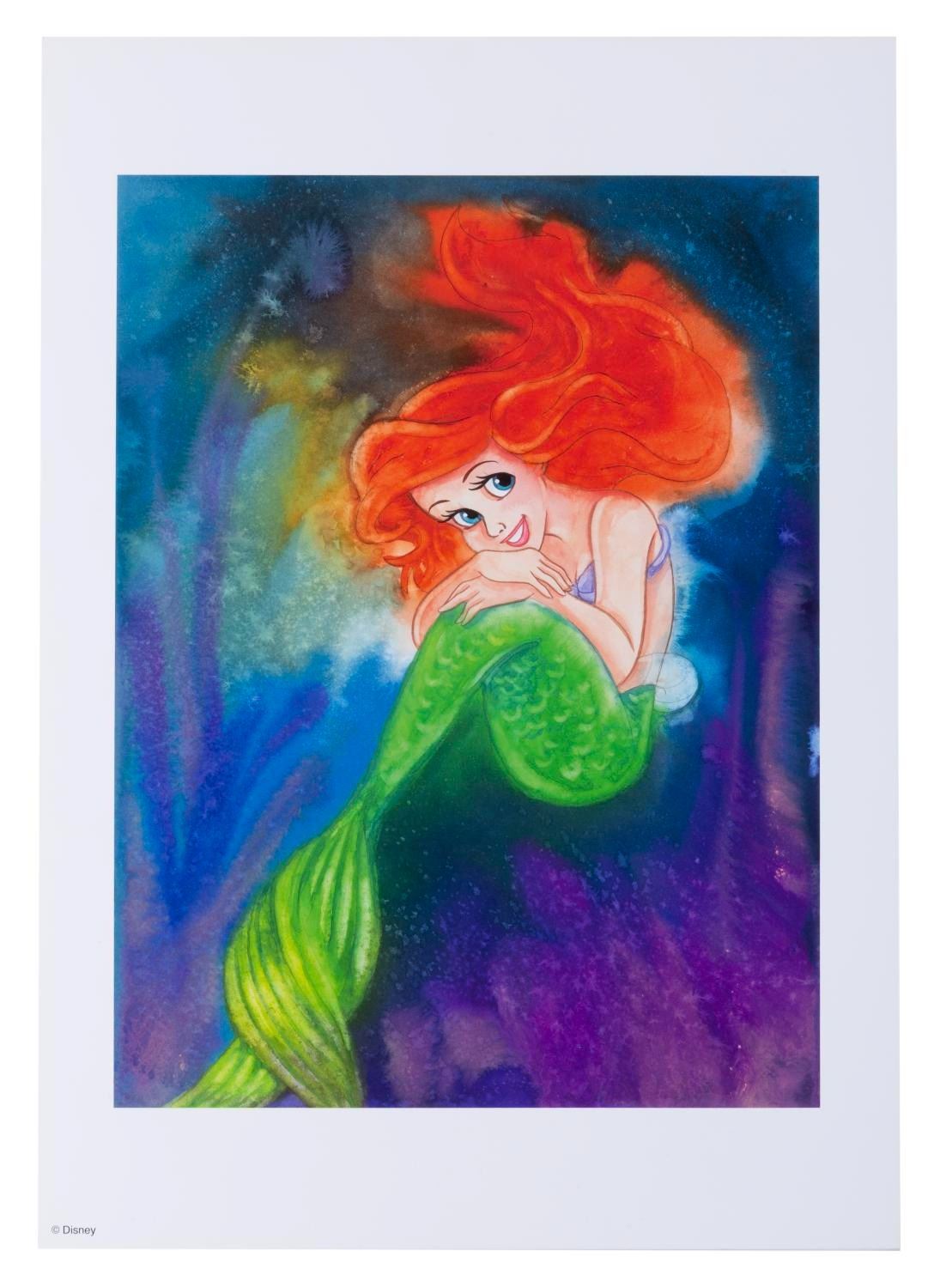(Disney, 2000s) A print of Ariel from "The Little Mermaid" by artist Randy Noble, titled "Our Little Mermaid." With an image size of 9" x 12" and 11" x 15.5" total, the print is in very good condition with a light indent in the top border that does not affect the image.
