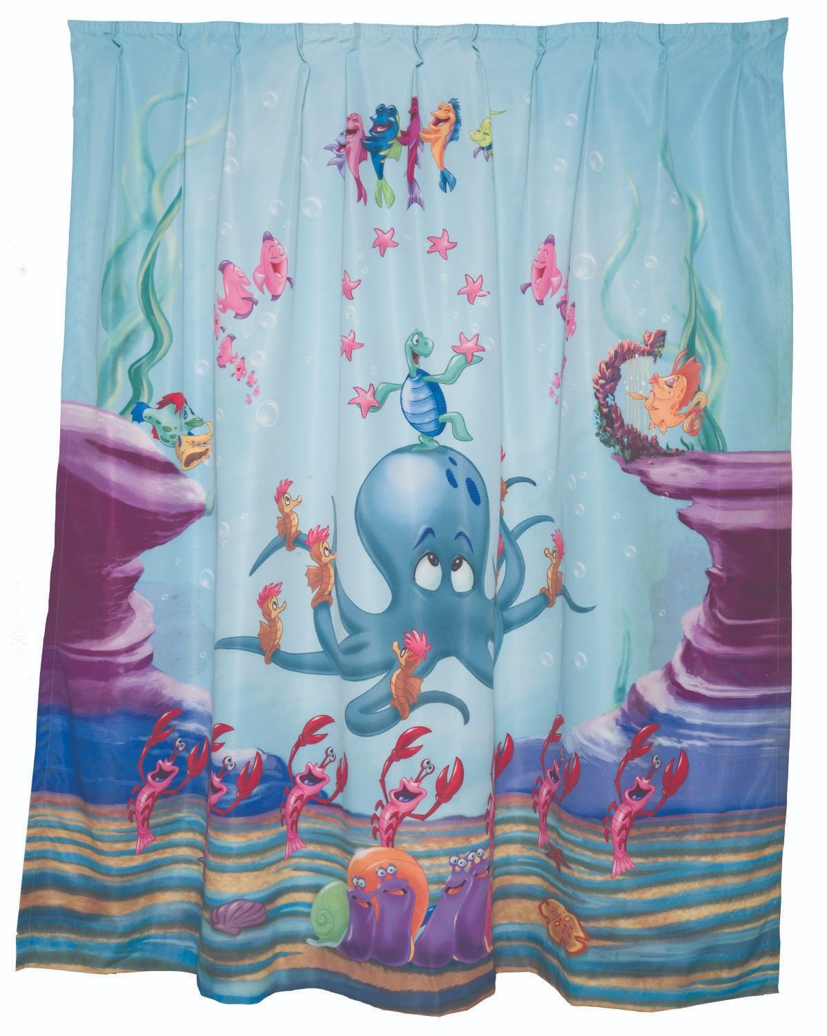 (Art of Animation Resort, 2000s) A shower curtain patterned with characters from Disney’s “The Little Mermaid” used in guestrooms at the Art of Animation Resort at Walt Disney World. The curtain is in good Park-used condition.