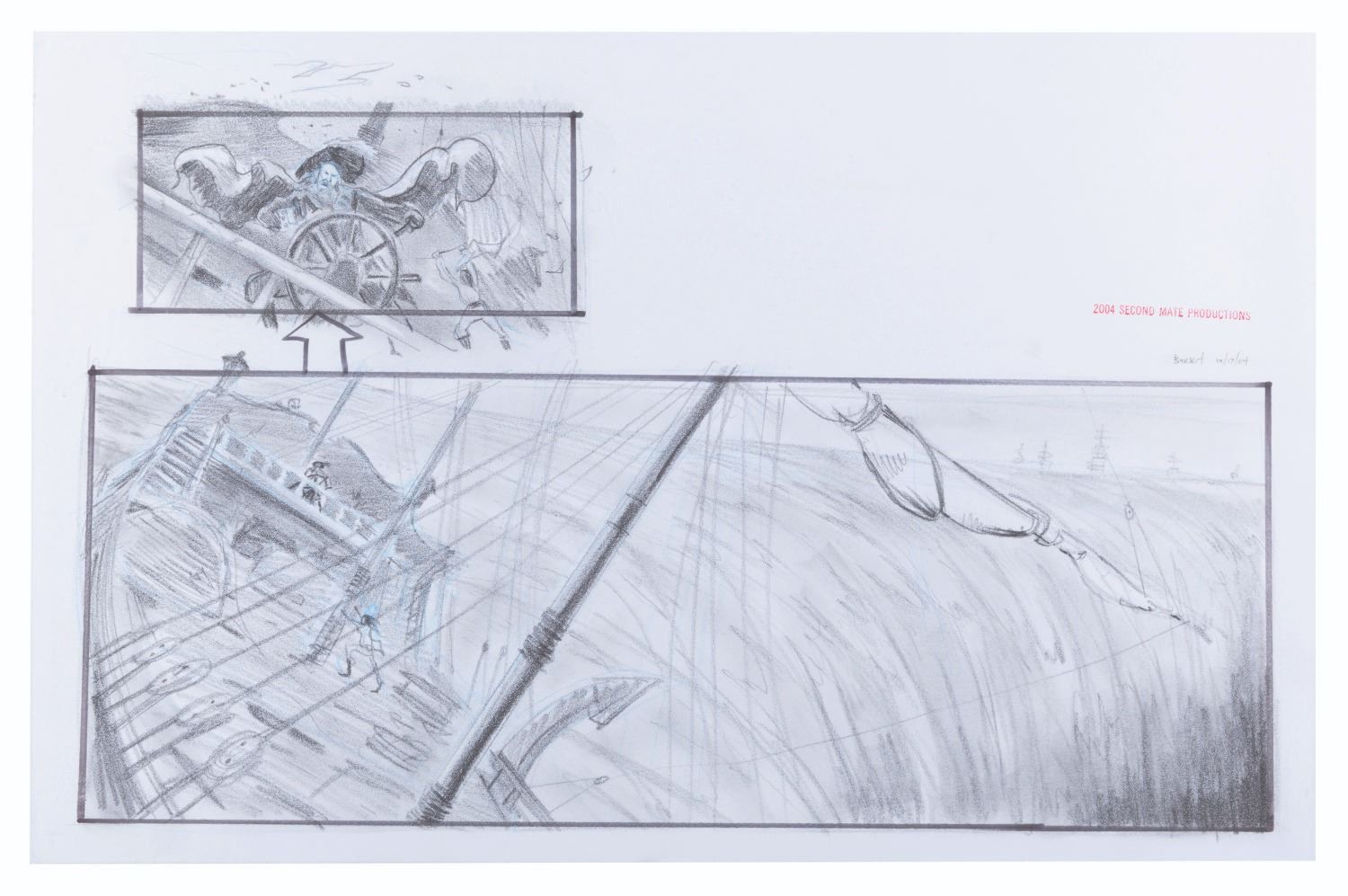 An "At World's End" Flying Dutchman Storyboard Drawing.