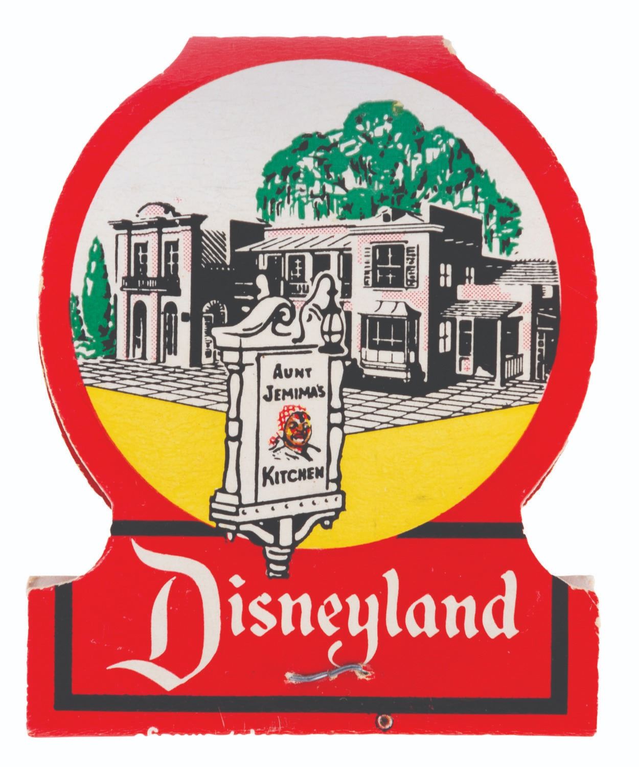 (Aunt Jemima's, 1960s) A rare complete book of 20 matches from Aunt Jemima's Kitchen at Disneyland. The inside flap reads, "You all come back" with "Disneyland" at the bottom. This matchbook measures 2.5"x 2" and is in very good condition with minor wear.