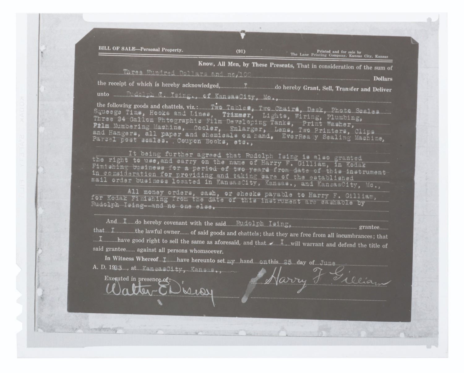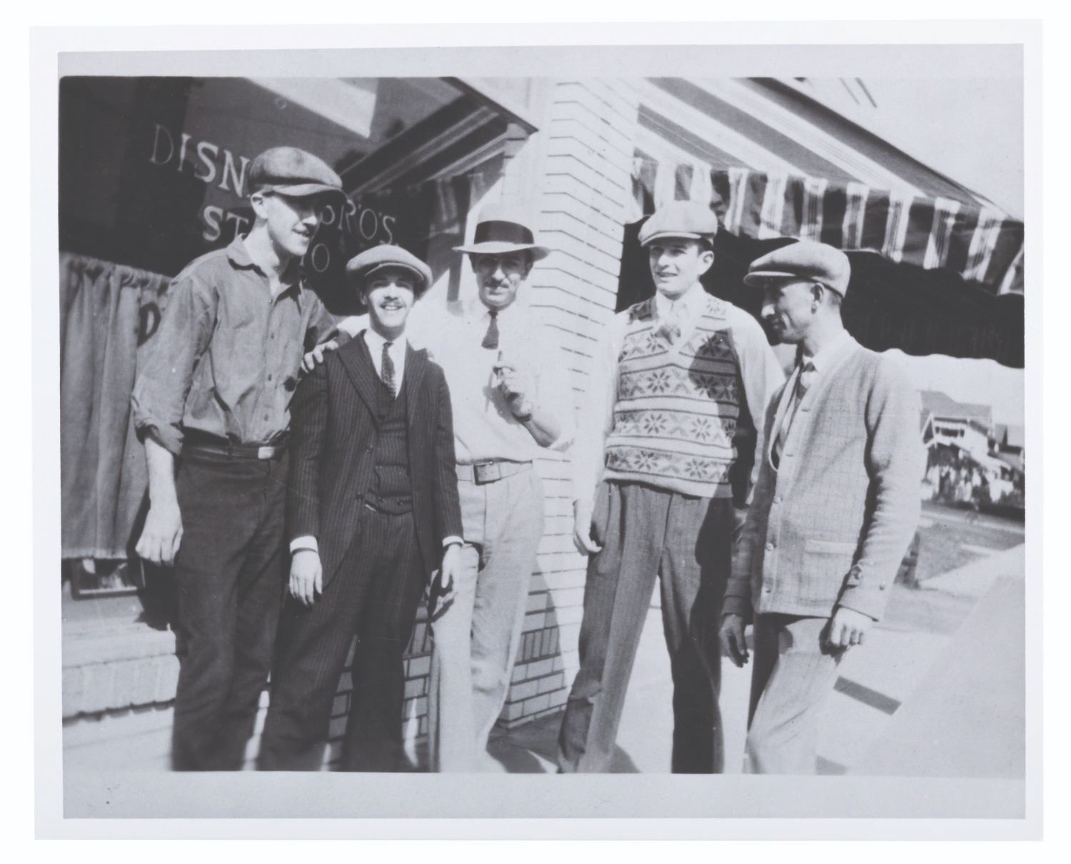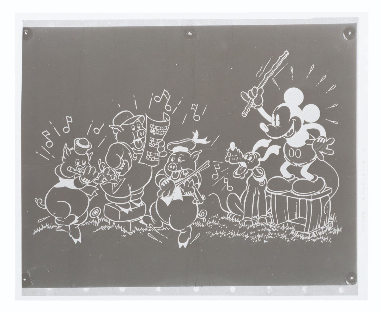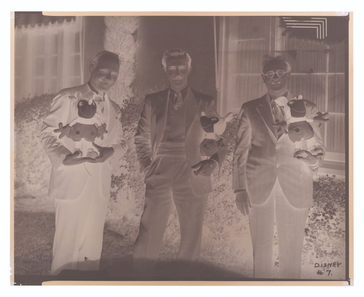 (Disney, 1920s-40s) A collection of 13 negatives and 24 prints of very early Disney Studio photos. The negatives include images of Walt with Charlotte Clark Mickey Mouse dolls, early Laugh-O-Gram images from Kansas City, employees outside the Disney Studio Kingswell storefront, animators at their desks, and an image of the Hyperion Studio complete with the Mickey Mouse sign on the roof. Prints include very early photos of Walt, Rudy Ising, and Ub Iwerks filming the Alice Comedies, clowning in the woods during other early film productions, Walt and Lillian Disney in front of the Kingswell Studio, and more. Measuring from 4” x 5” up to 8” x 10”, the negatives and prints are in very good condition with some typical handling wear throughout. From the estate of Carl Stalling.