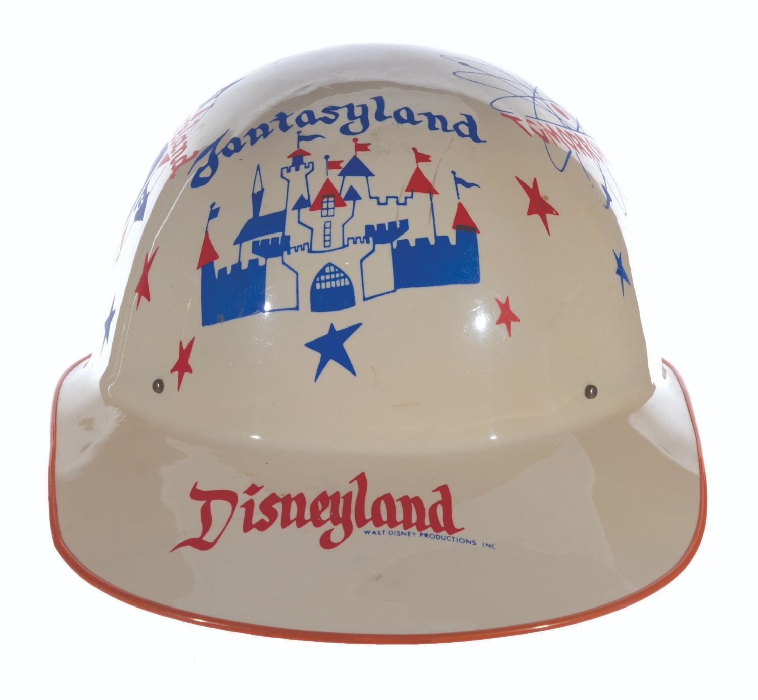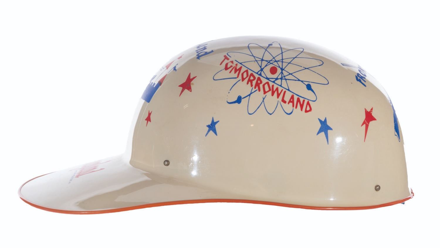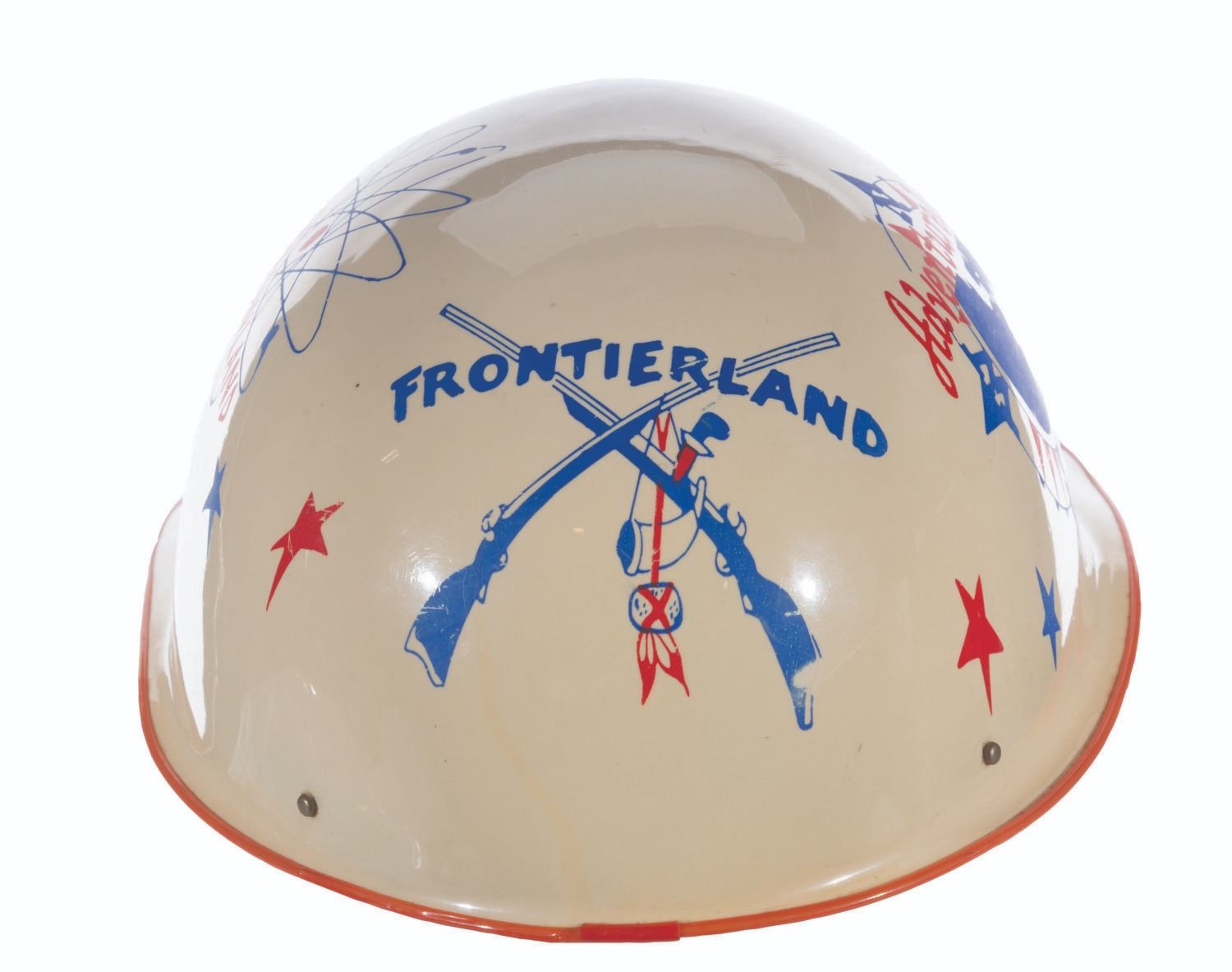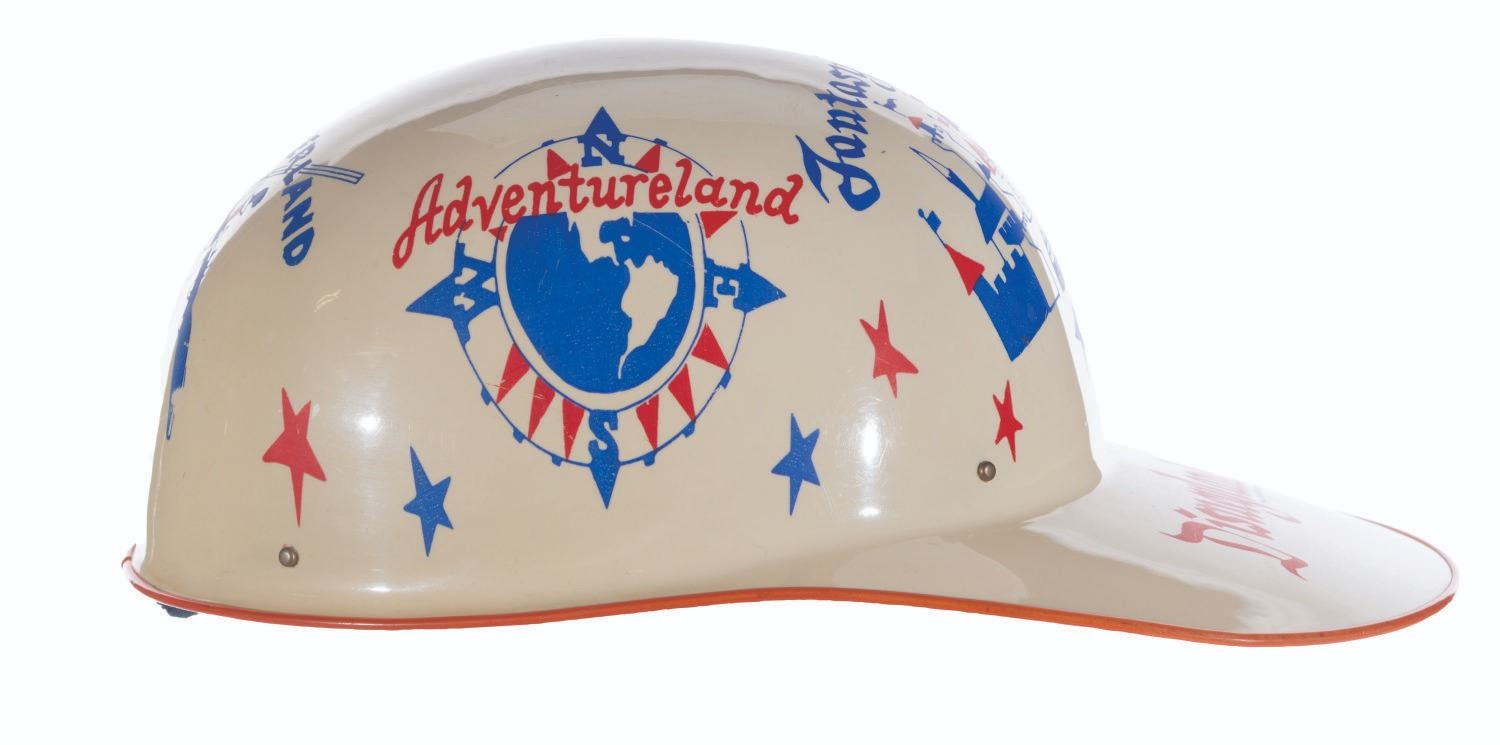 (Disneyland, 1956) A souvenir keppy cap featuring artwork of Disneyland’s lands. Measuring 7.5" x 11" x 5" tall, the keppy cap displays in very good condition with light scratches, spots of ink loss, wear, and discoloration from age.
