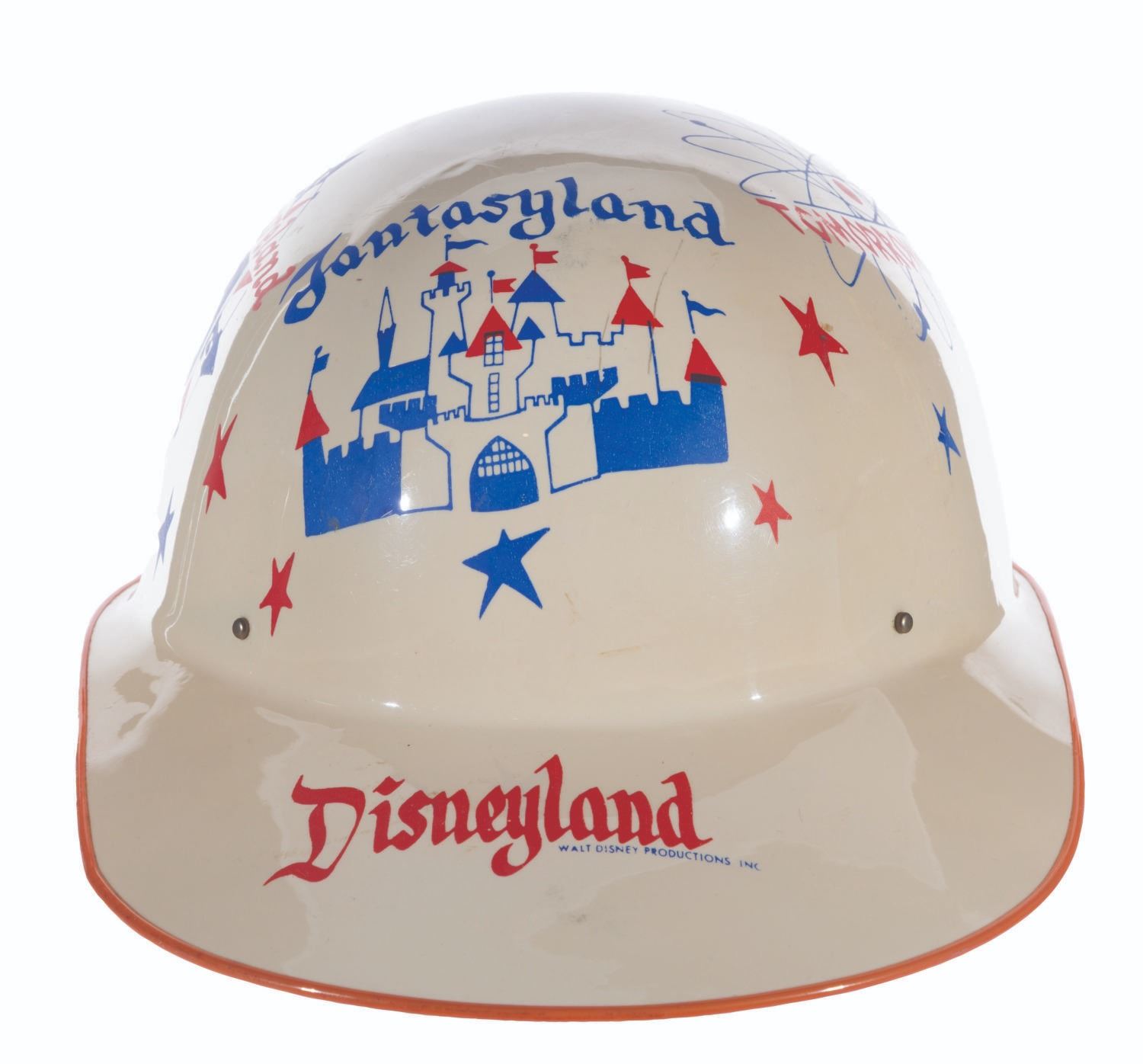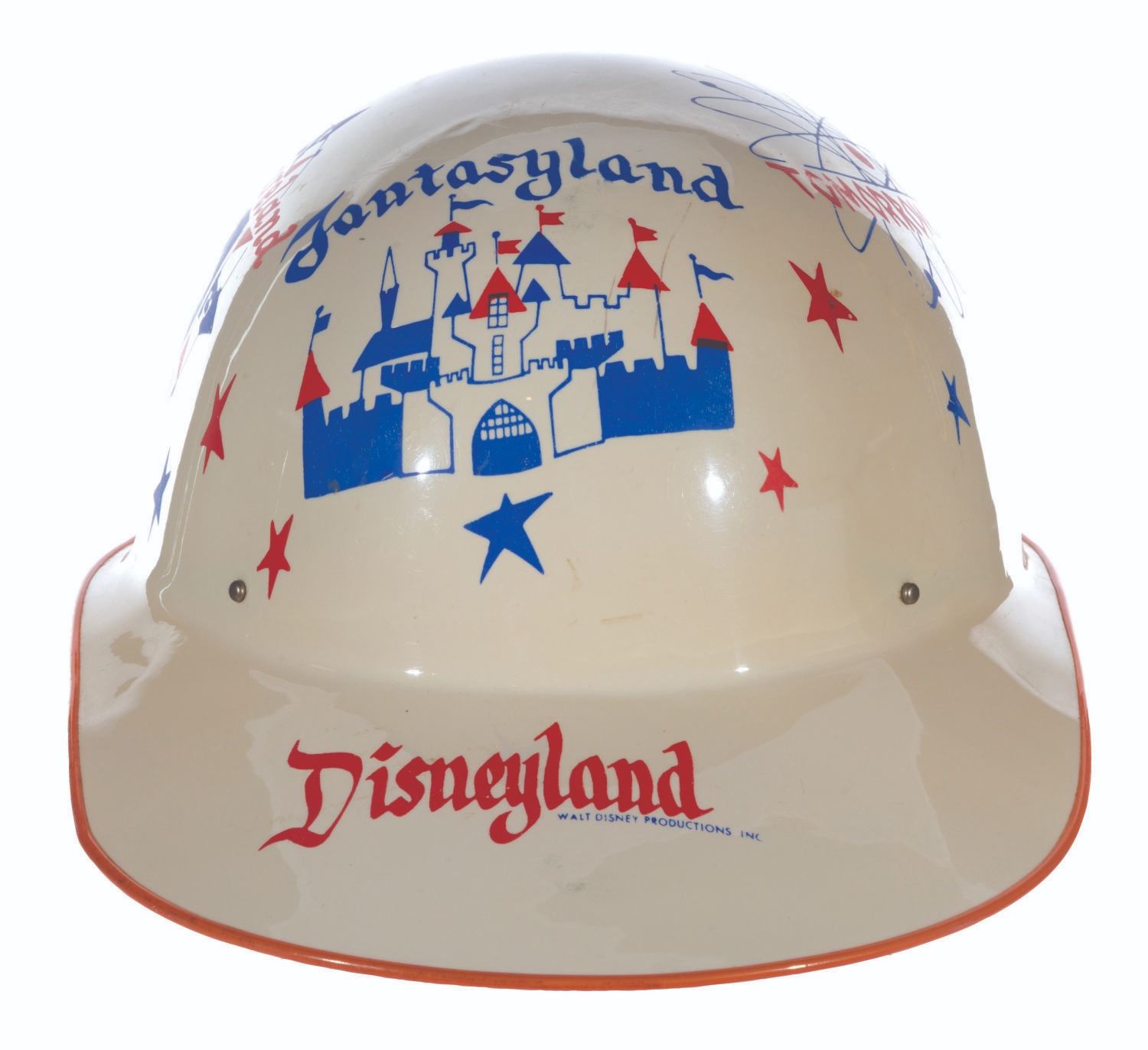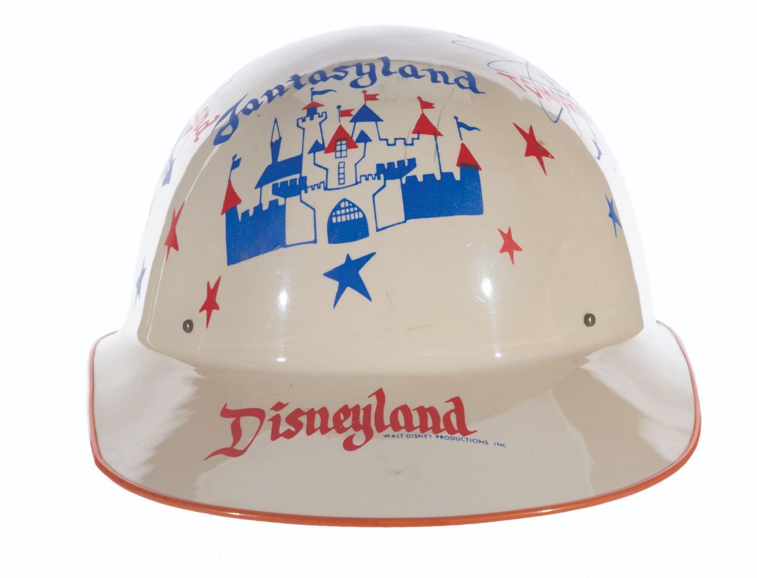 (Disneyland, 1956) A souvenir keppy cap featuring artwork of Disneyland’s lands. Measuring 7.5" x 11" x 5" tall, the keppy cap displays in very good condition with light scratches, spots of ink loss, wear, and discoloration from age.