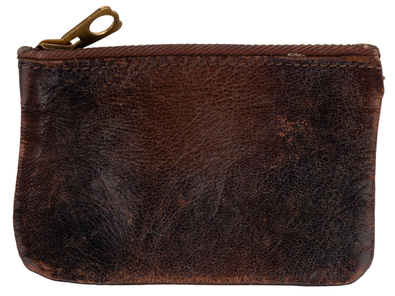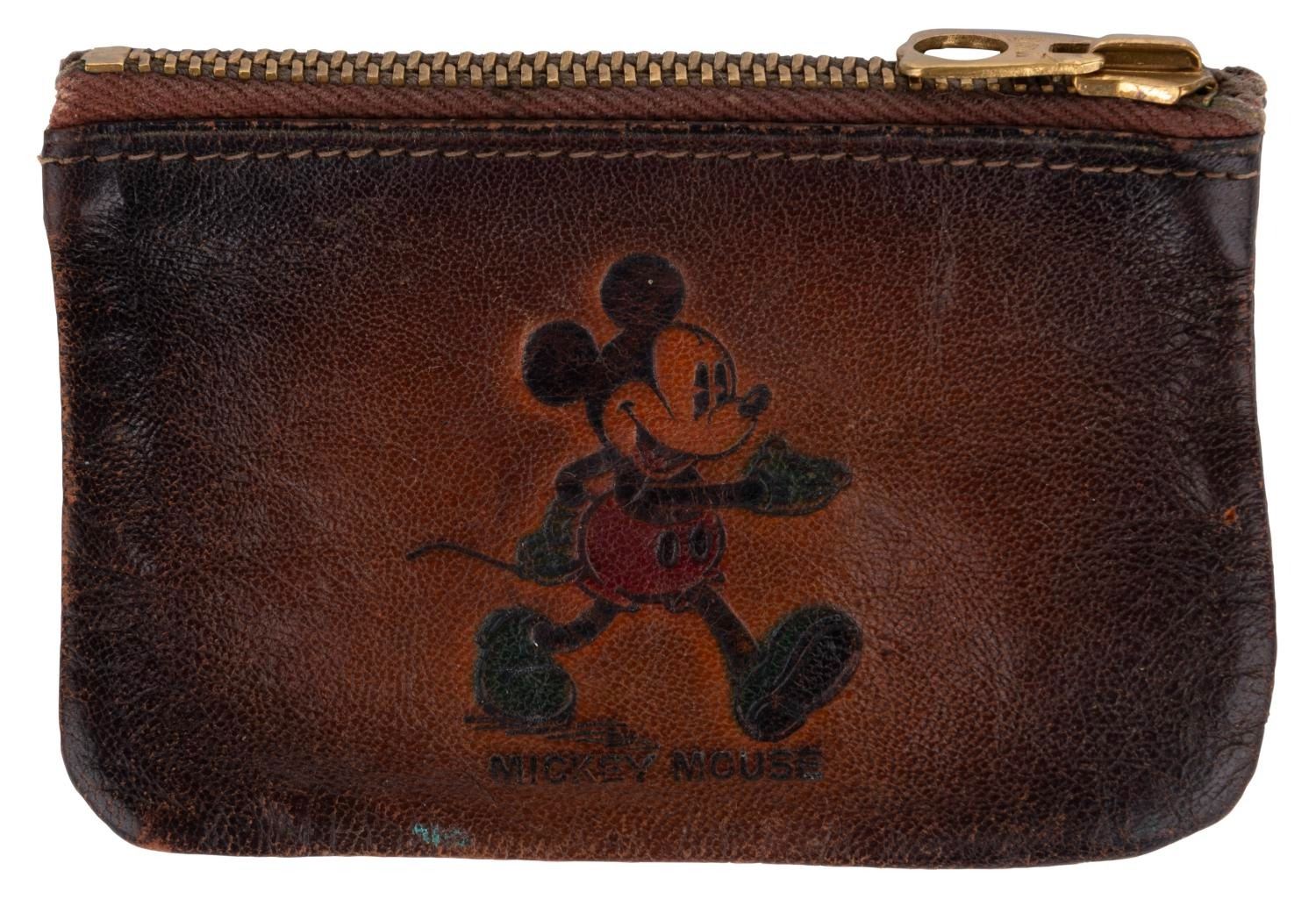 (Disney, 1930s) An embossed leather Mickey Mouse coin purse. Measuring 3" x 4.25" the purse is in good condition with edge wear, scuffing and discoloration from age and use.