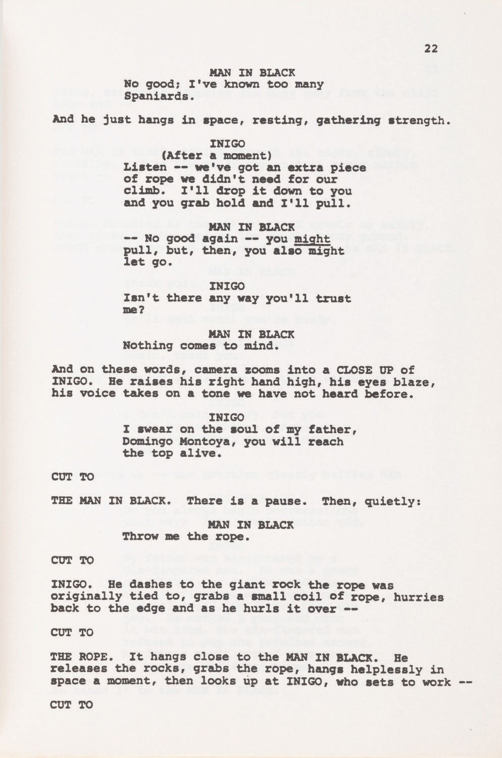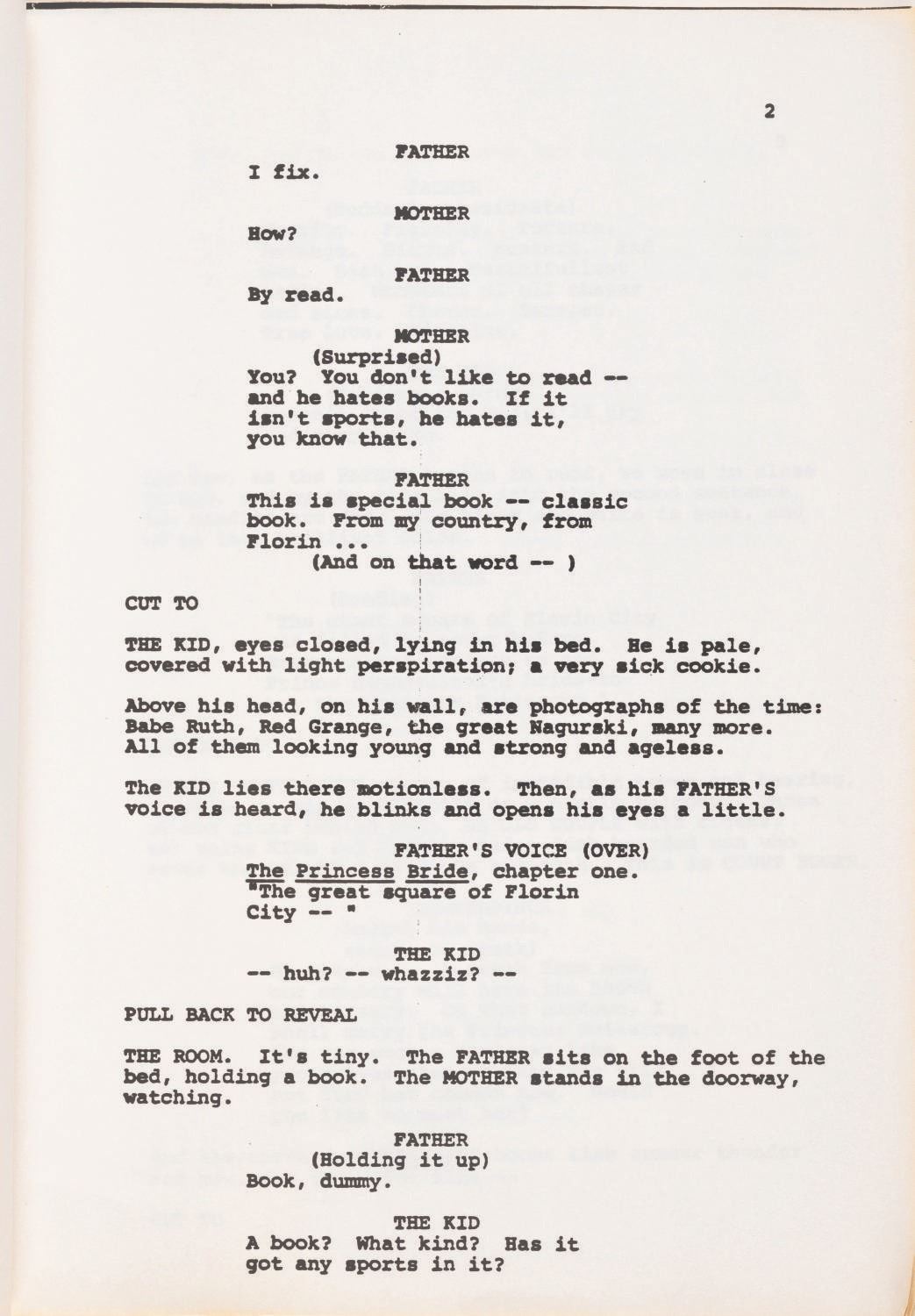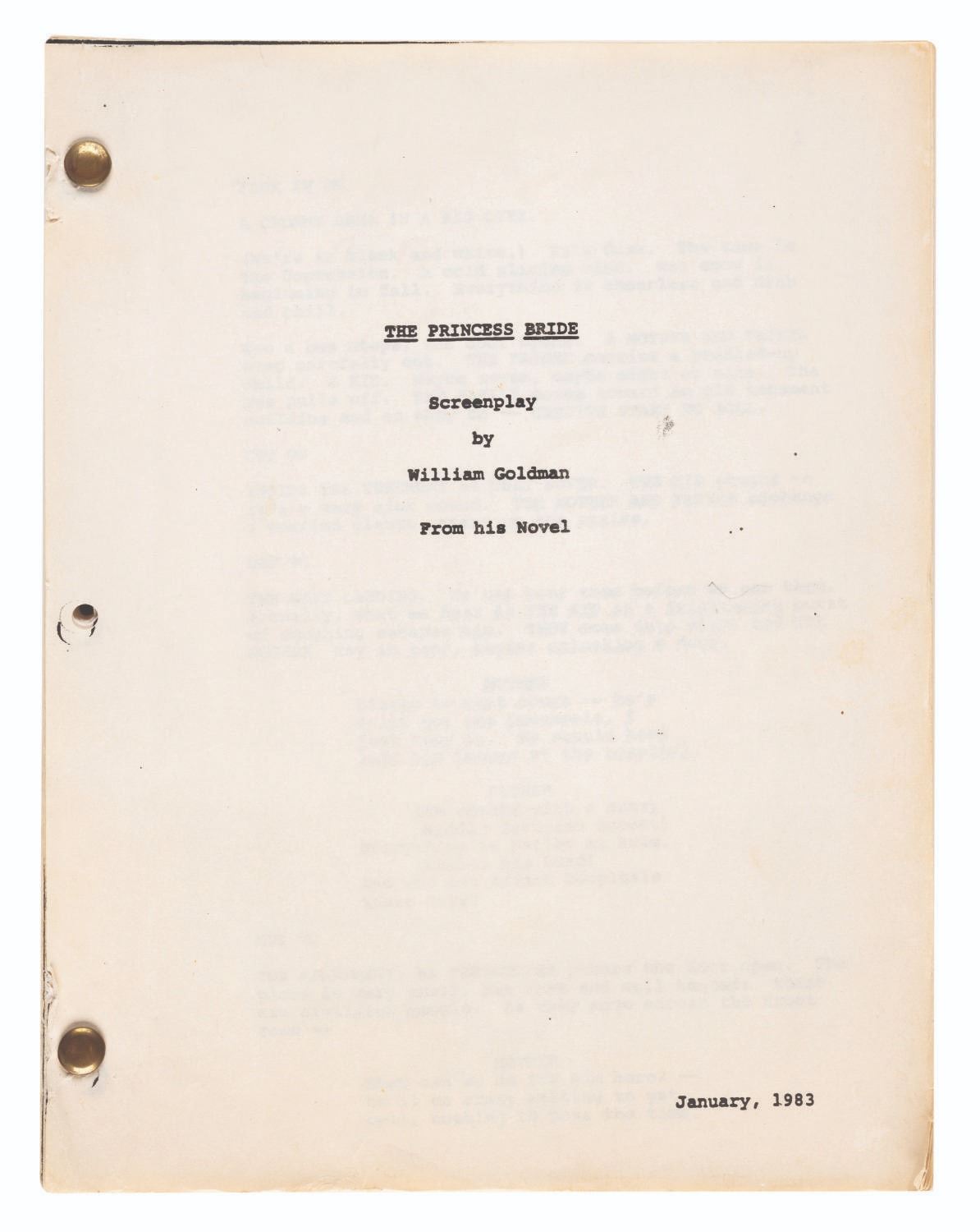 (20th Century Fox, 1987) An early production-used screenplay for "The Princess Bride,” written by William Goldman from his novel and dated January 1983. Measuring 8.5” x 11”, the screenplay is in good condition with edge wear, discoloration from age, and creases from production use.