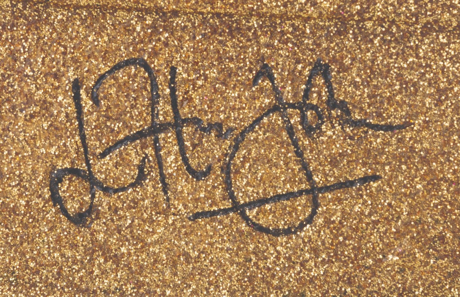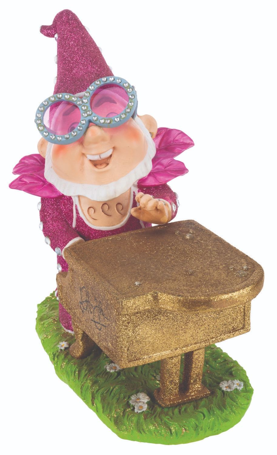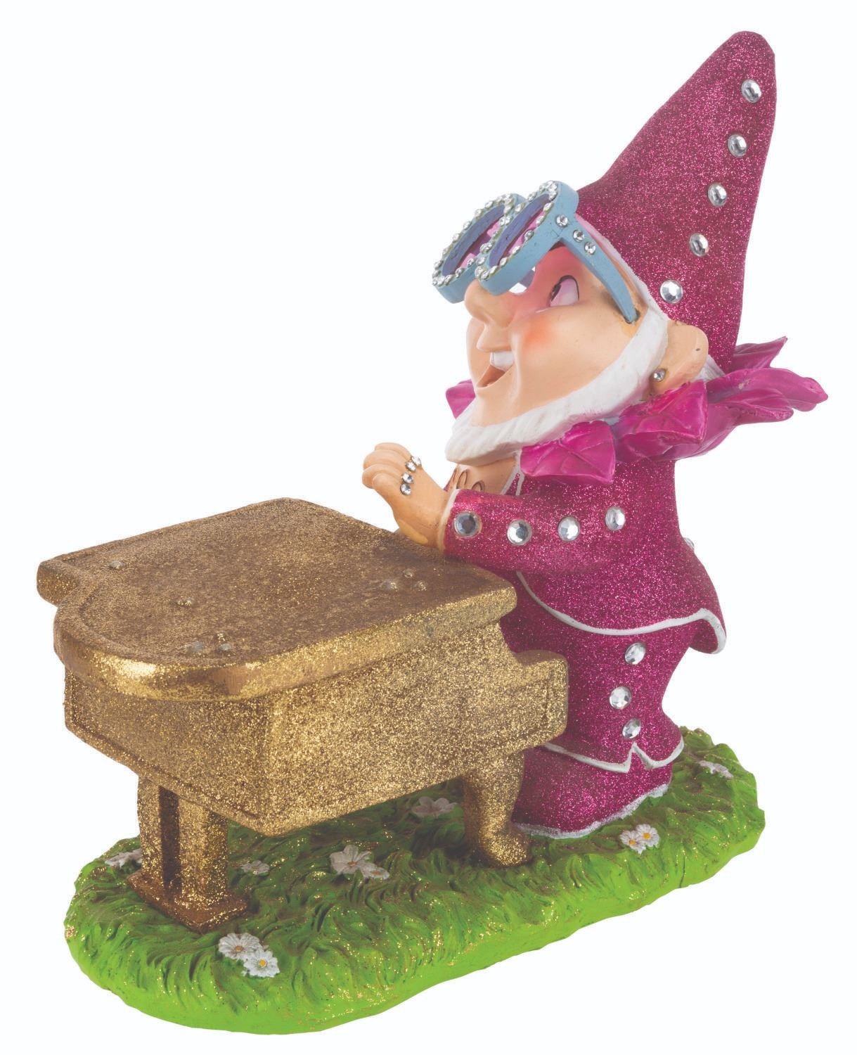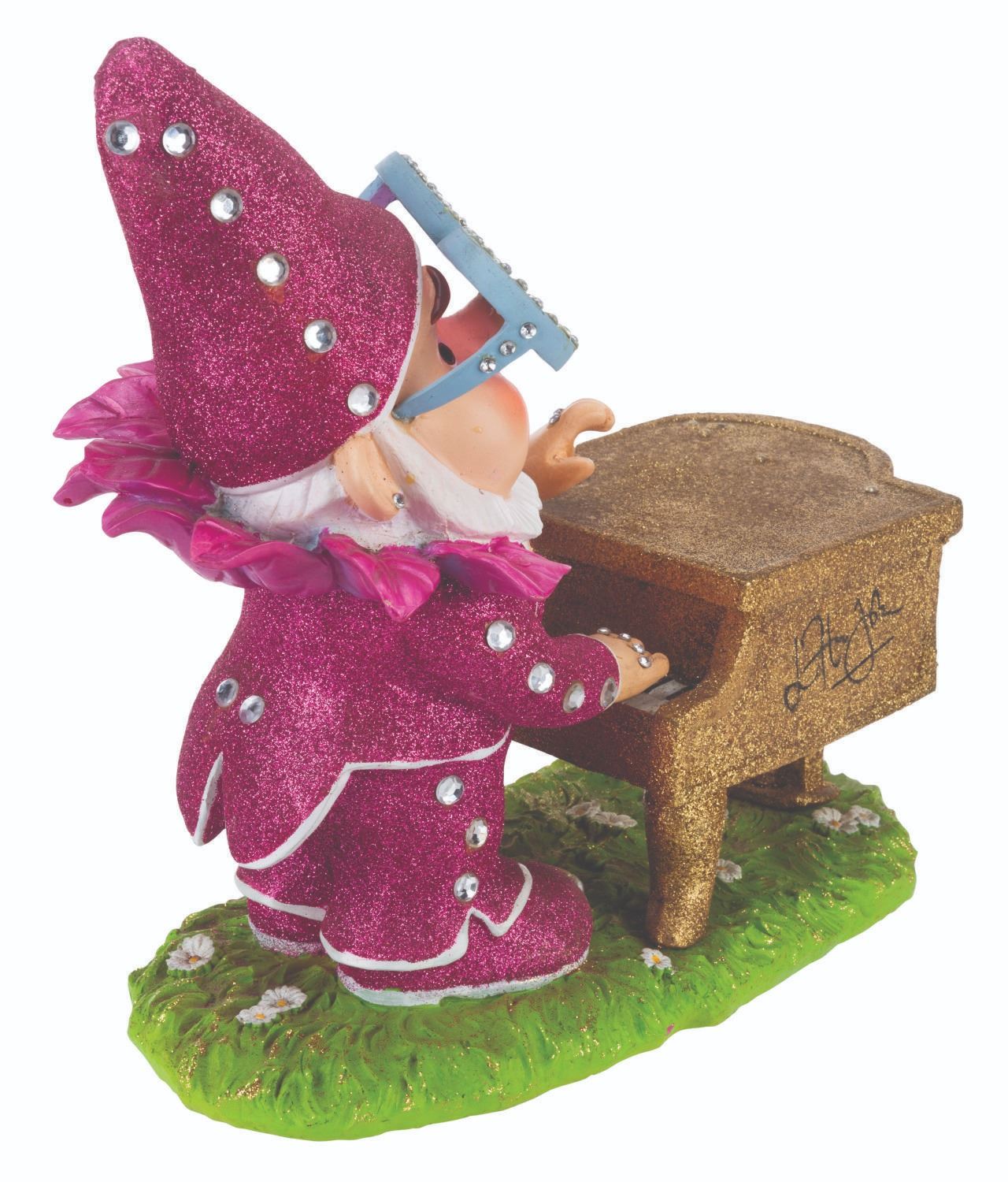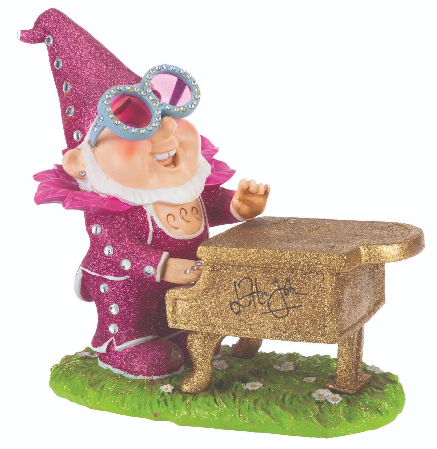 (Paramount, 2018) A gnome statue of Elton John, for the animated film “Sherlock Gnomes.” The iconic singer wrote original music for the Paramount feature, which was a sequel to Disney’s “Gnomeo & Juliet.” The hand-painted piece with glitter and rhinestone accents was released in a limited edition of 500, bearing a facsimile Elton John signature on the piano. Measuring 12” x 6.5” x 11.5” tall, the resin statue is in very good condition with light production flaws, including spots of paint loss, small cracks, and light stains.