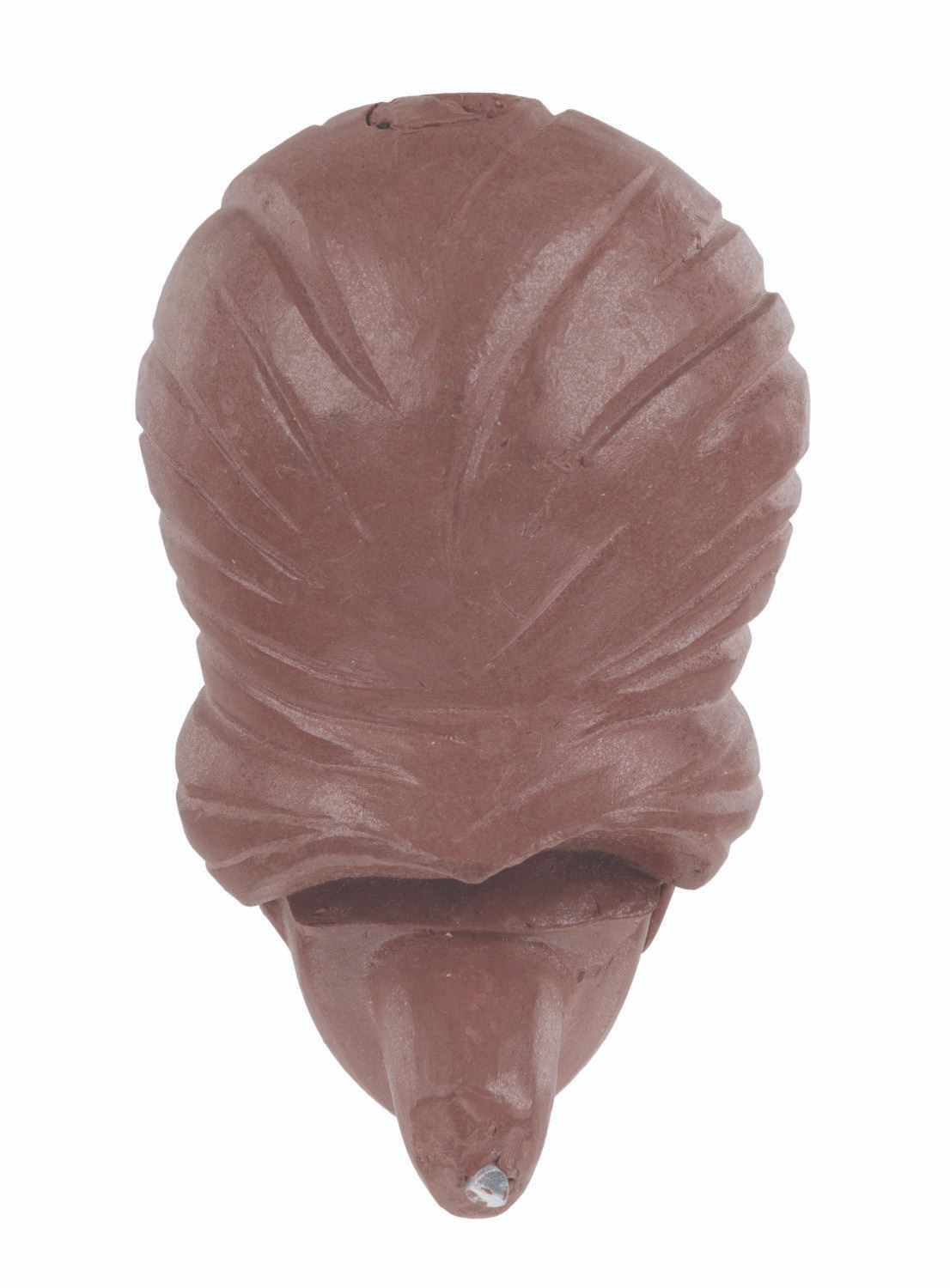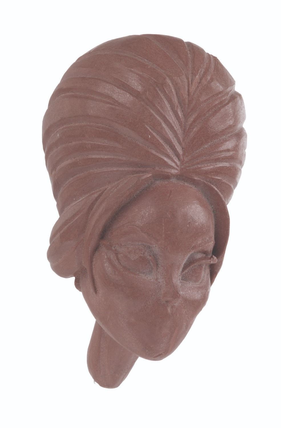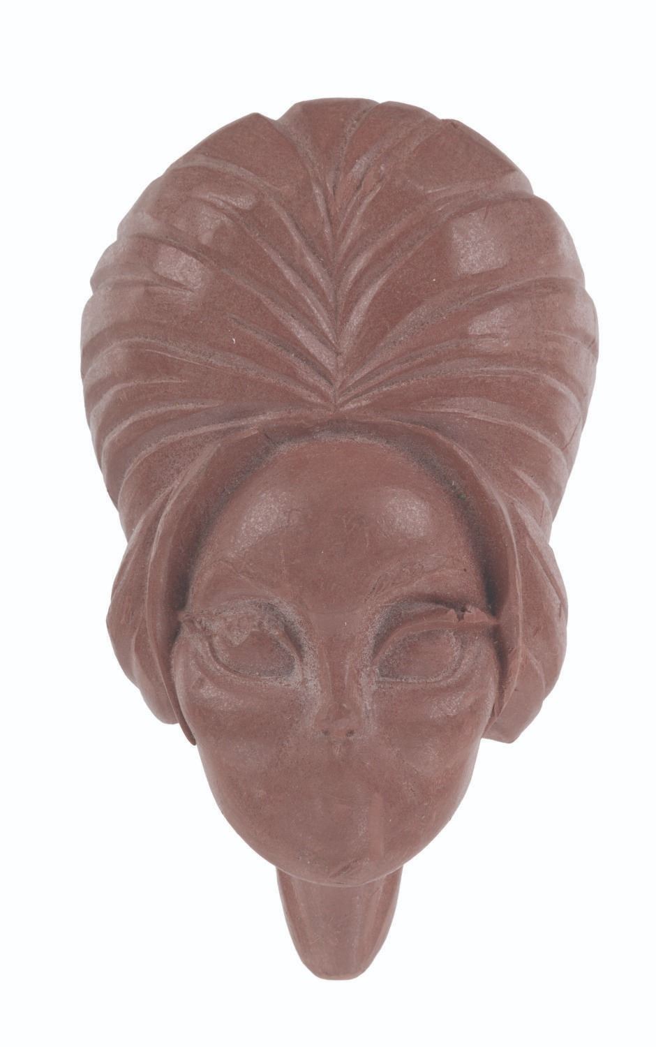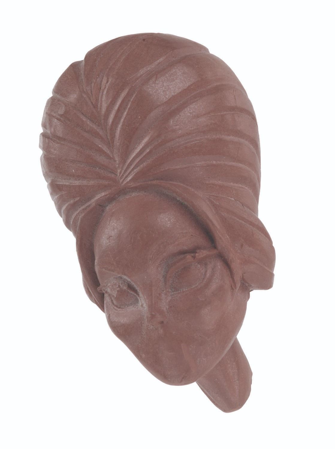(This TV, 2010) The original clay model sculpted by Shu for a stop-motion puppet head cast of Elvira from “Elvira’s Movie Macabre.” For the 2010 revival’s first season episode “Santa Claus Conquers the Martians,” the Chiodo Brothers created a stop-motion segment featuring the ghoulish host. Measuring 3” x 2.75” x 4.75” tall, the head is in good condition with wear from production use, including scratches, an intentional hole on the top, a missing eyelash, and scuffs.