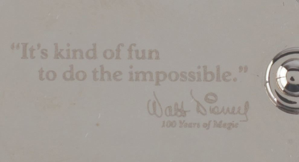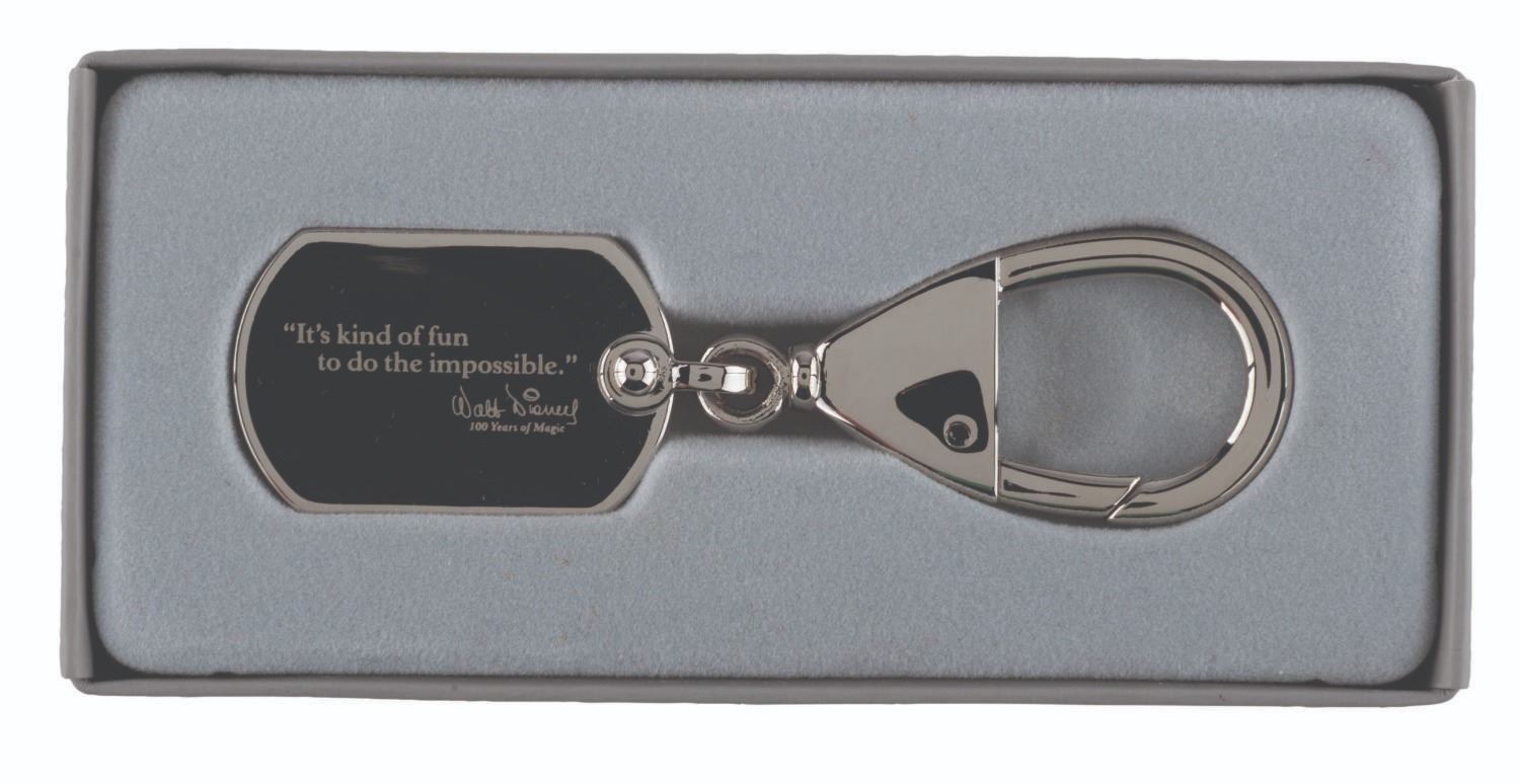 (Disney, 2001) A Walt Disney Company employee exclusive keychain featuring Walt’s quote, "It’s kind of fun to do the impossible. " Measuring 3.25 " long, the keychain is in fine condition.