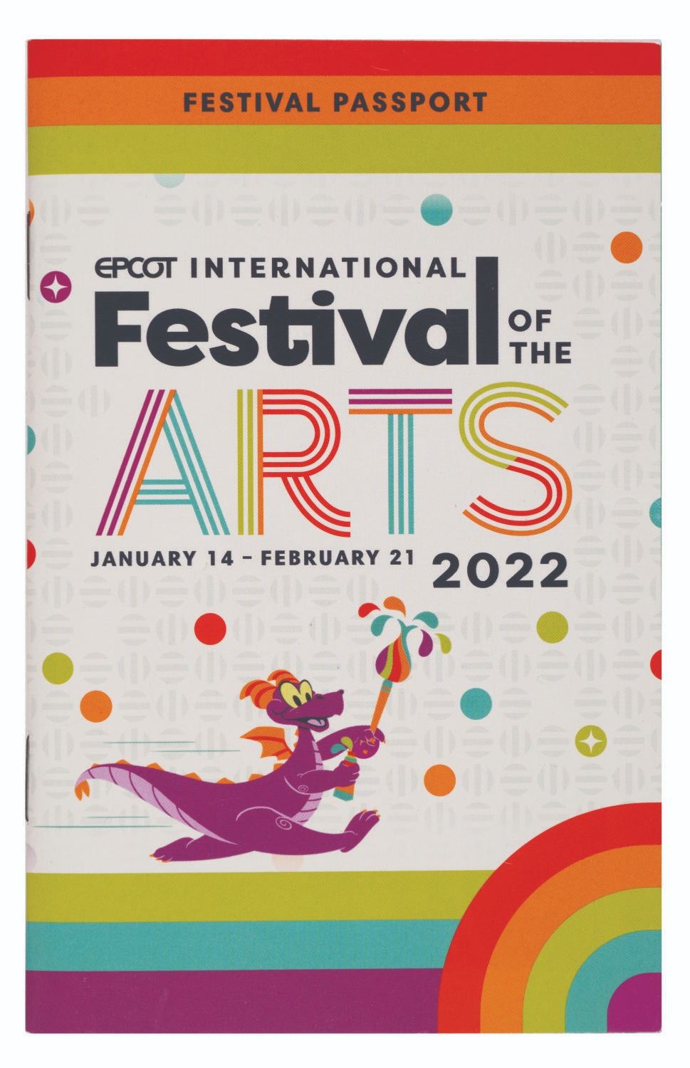 (Epcot, 2022) An Epcot International Festival of the Arts Passport booklet highlighting the food and merchandise options at the seasonal festival. Measuring 3.5” x 5.5”, the unstamped 28-page booklet is in fine unused condition.