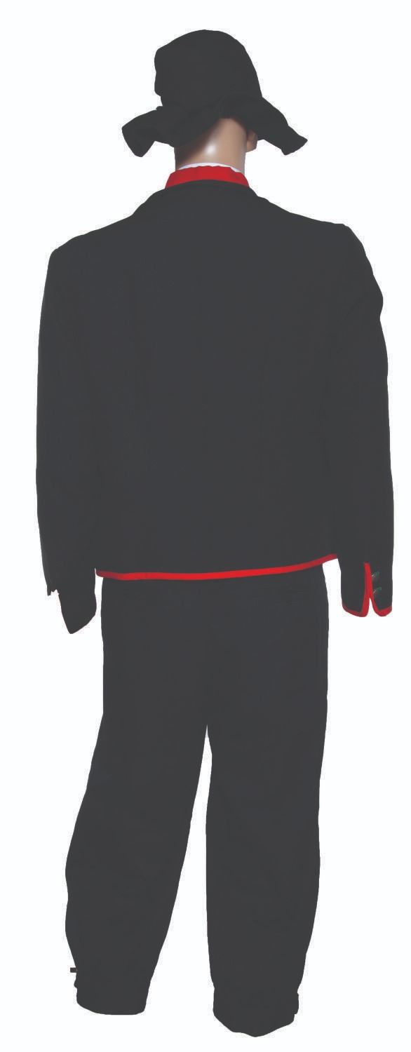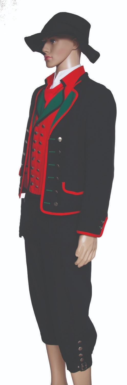 (Epcot, 2000s-10s) A costume worn by Epcot World Showcase Norway Hosts. Included are a shirt, pants, coat and a cravat. The shirt measures a size large, the vest is "46R," the pants are not labeled for size, the coat is "42R," and the cravat accessory is 48" x 3". Each piece is in very good condition exhibiting faint stains, spots of discoloration, and light wear from Cast Member use.