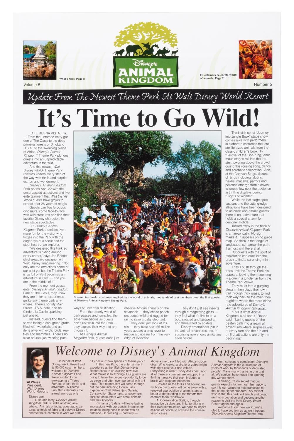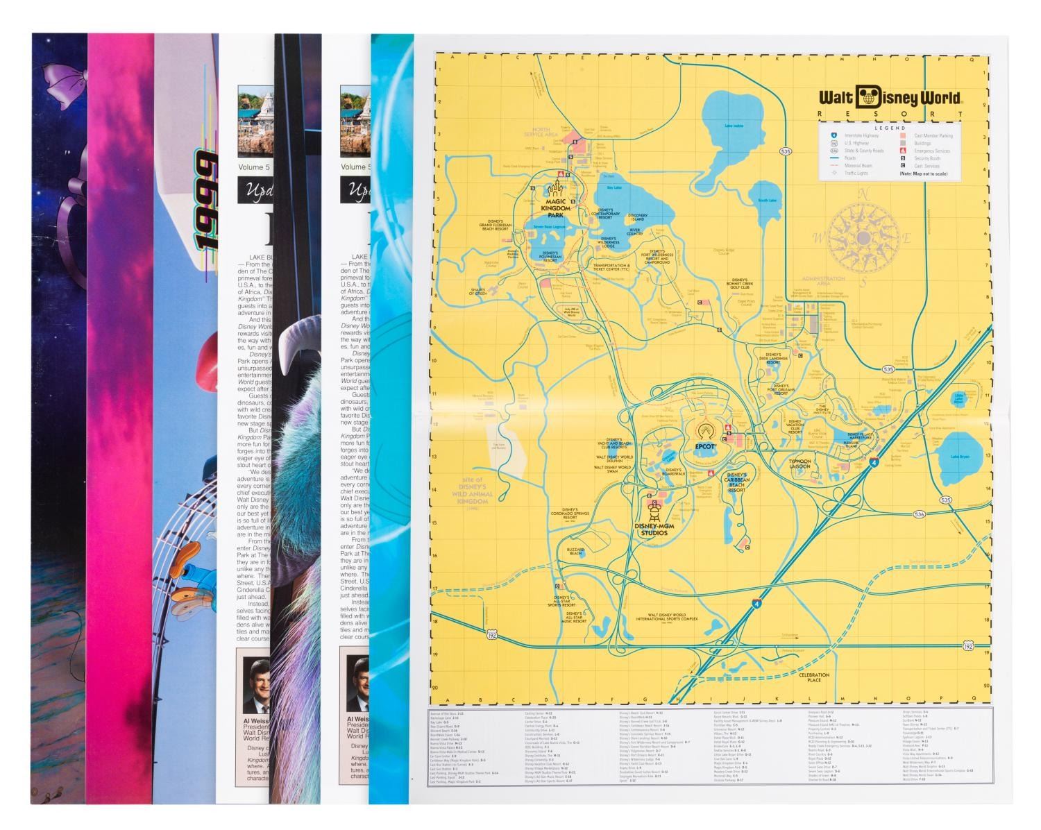 (Walt Disney World, 1995-2001) A collection of six Walt Disney World Eyes and Ears and Animal Kingdom newsletters. Highlights include ads and articles for “Atlantis: The Lost Empire,” “Cinderella,” and “Monsters, Inc.” Measuring 11” x 17” each, the newsletters are in good to very good condition with light wear and creases.