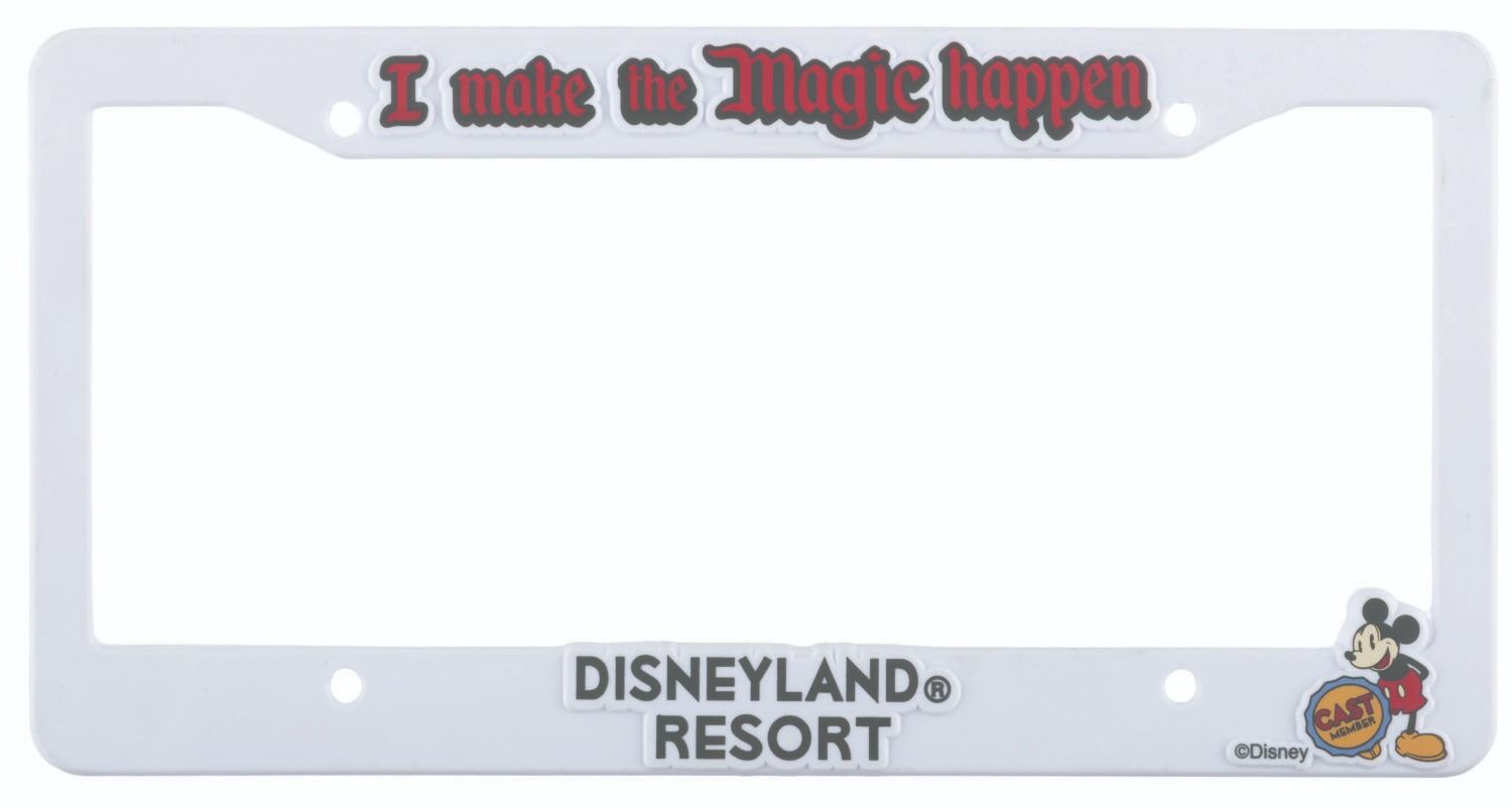 (Disneyland, 2000s) A Cast Member exclusive Disneyland Resort license plate holder which reads"I Make the Magic Happen.” Measuring 6.25" x 12.25", the holder is in very good condition with light handling wear.
