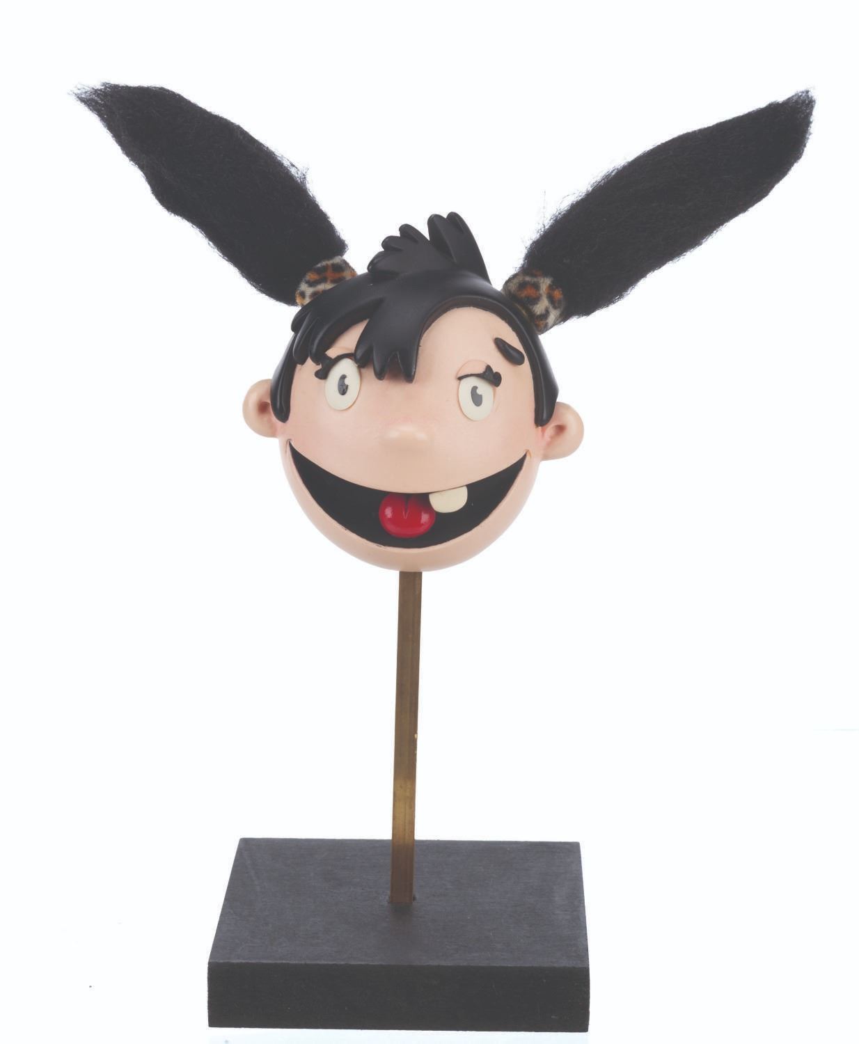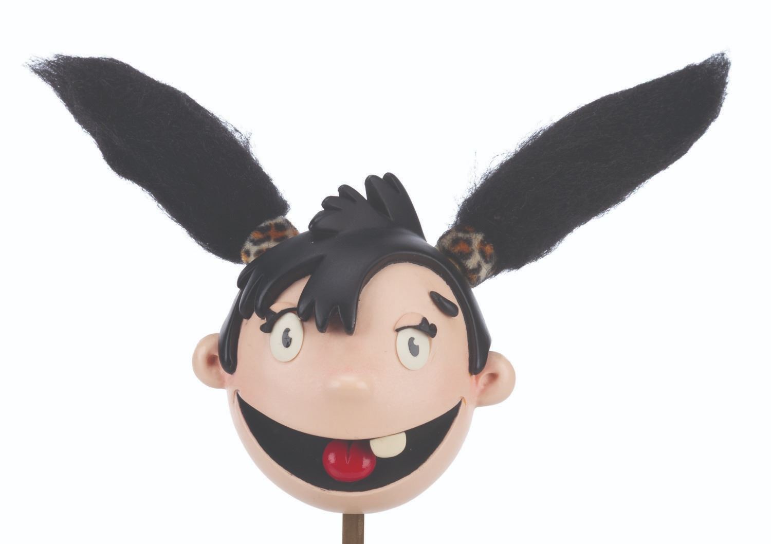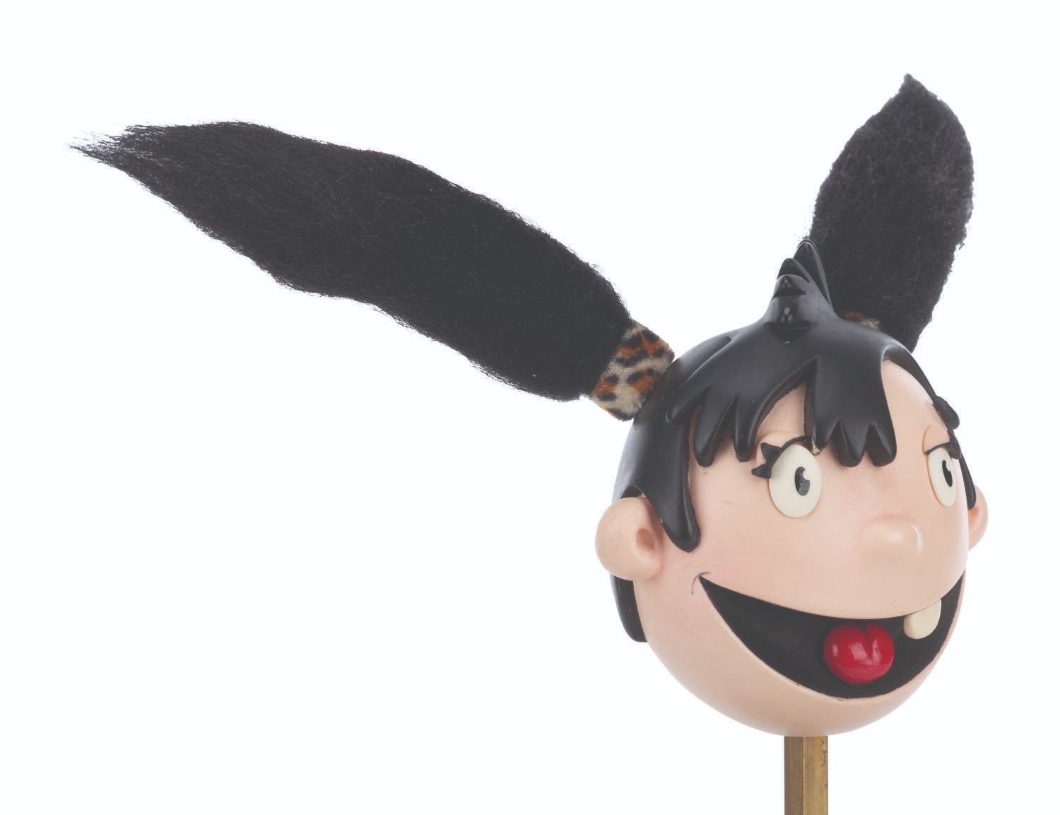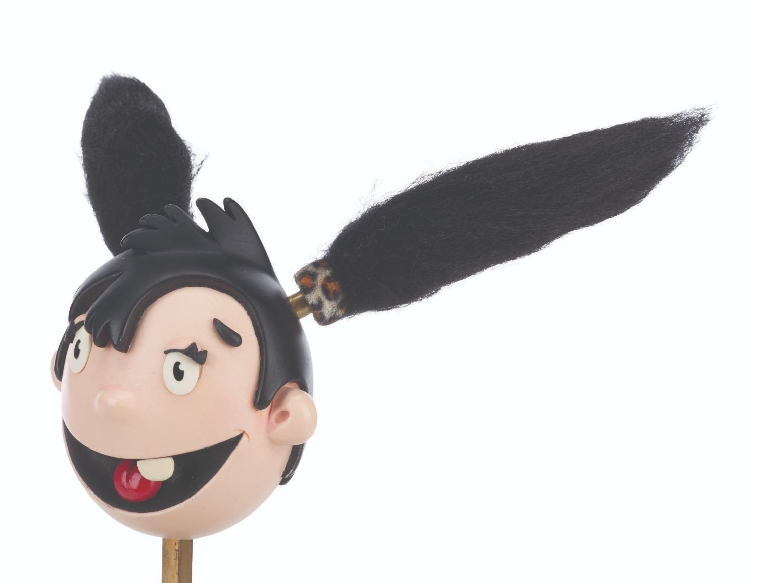 (Telegael, 2009-2013) An original stop-motion puppet head from “Igam Ogam,” a United Kingdom preschool program featuring the adventures of a cave girl and her prehistoric animal friends. Accomplished with resin, faux fur, and hair, with removable eyelids, the puppet head measures 8” x 6” x 4.5” tall and 9” tall with the display stand. The head is in very good condition with light wear from production use.