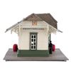 (Mike Cozart, 1993) A hand-built model of the Disneyland Frontierland train station, constructed by Imagineer Mike Cozart. The piece includes Disneyland signage and comes with two scale red fire barrels attached, and two barrels loose along with a train conductor figure. Measuring 3.75" x 5" x 2.75", the one-of-a-kind piece is in fine condition.