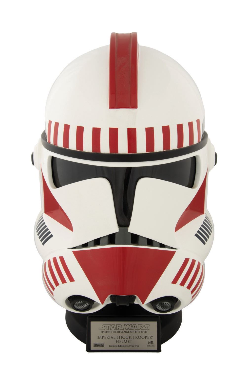 (Master Replicas, 2007) An Imperial Shock Trooper Helmet replica of the originals seen in "Revenge of the Sith." Numbered 629 of 750, the piece measures 12.5" tall x 12" at its widest diameter and is in fine condition exhibiting light wear.