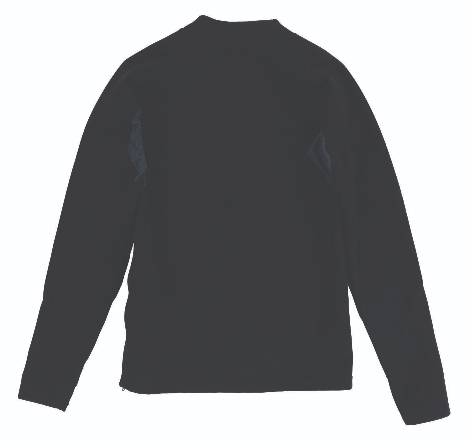 (Disney, 2013) An "Iron Man 3” costume shirt worn by a stunt double for Robert Downey Jr., with Tony Stark’s arc reactor insignia at the center of the chest. The unlabeled neoprene shirt appears to be a size medium, in very good condition with light wear from production use.