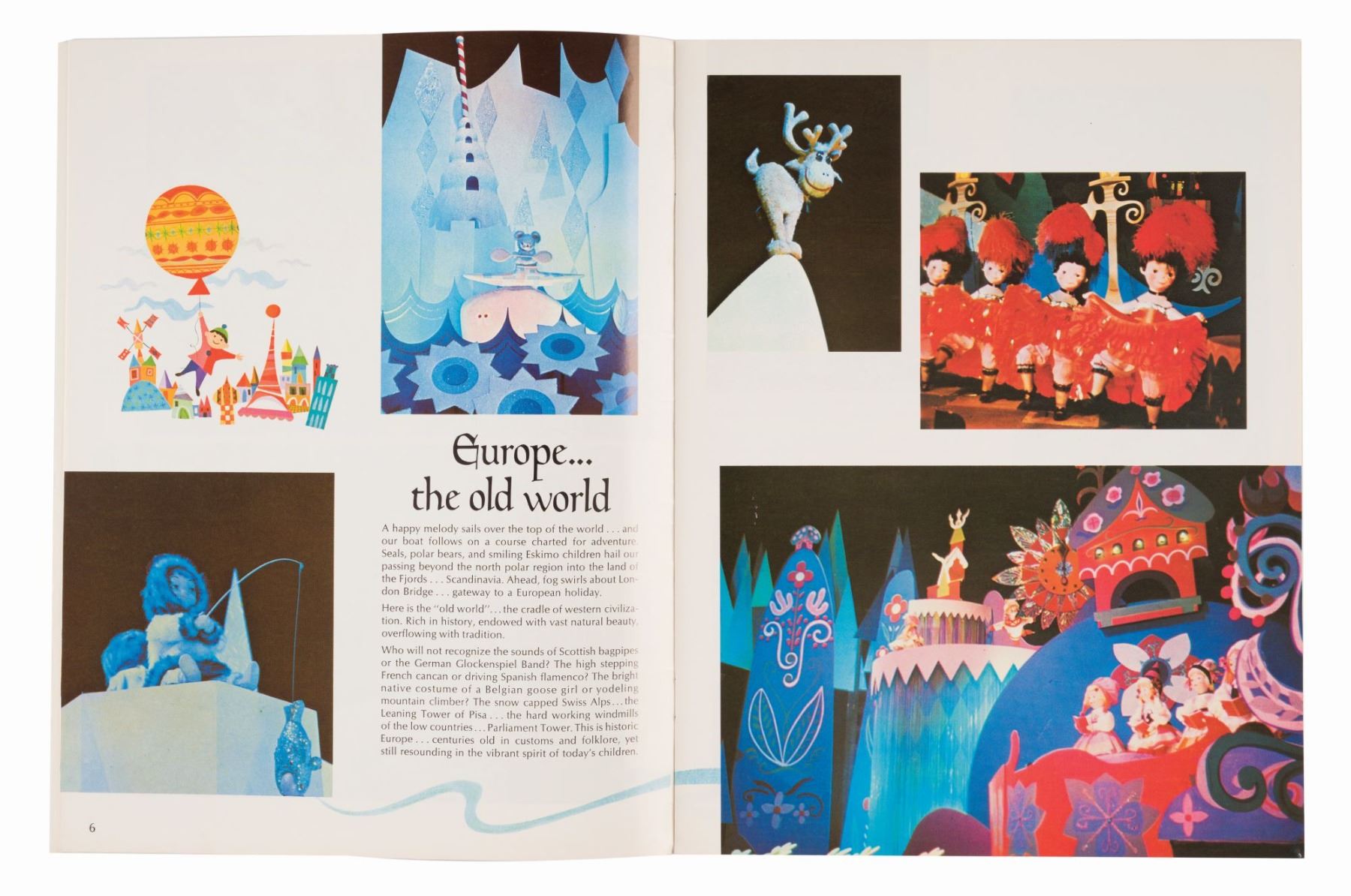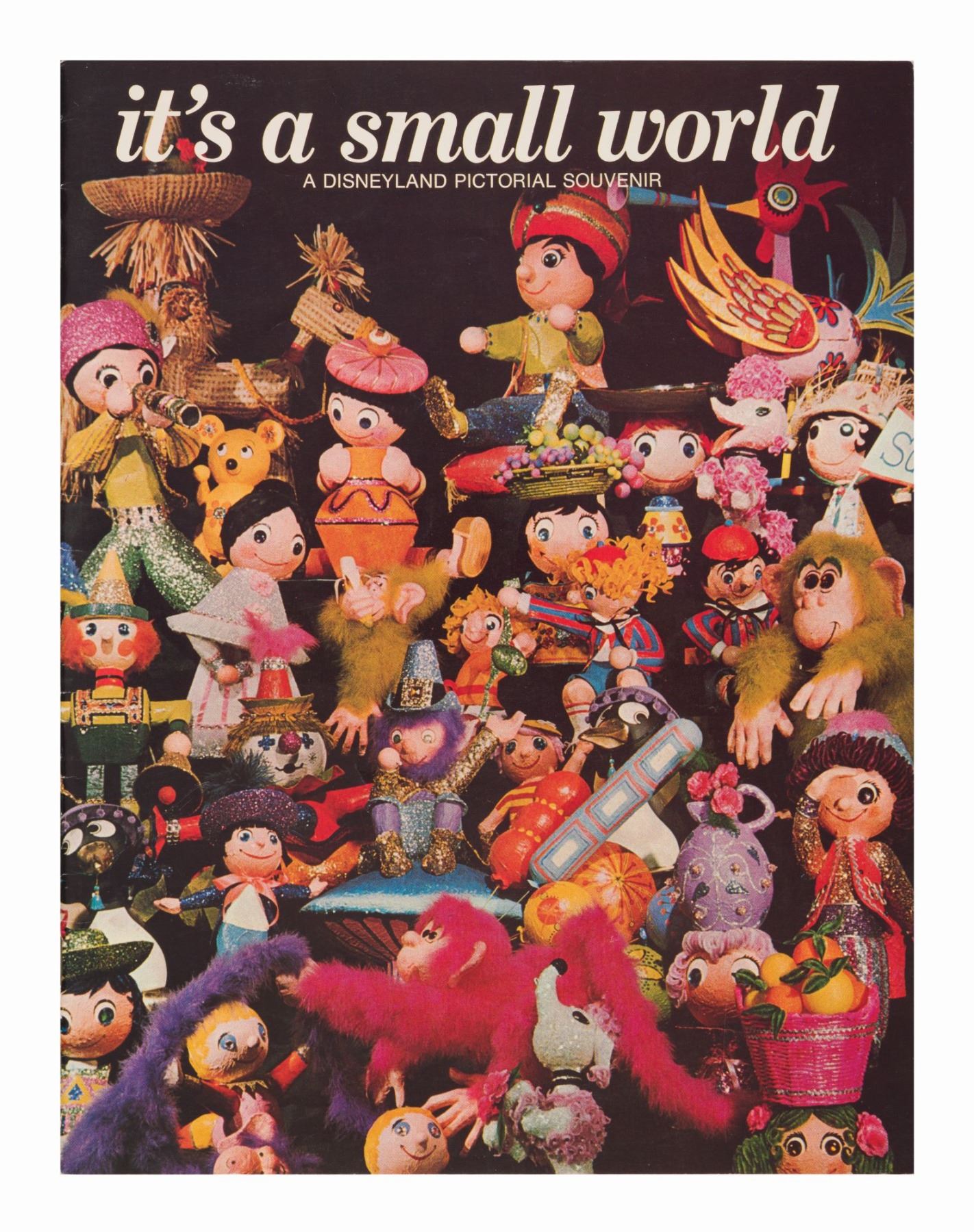 (Disneyland, 1974) A beautiful pictorial souvenir booklet of the "It's a Small World" attraction at Disneyland. This 1974 edition of the 32-page booklet features a new cover and slightly different text from the original printing. Measuring 8.5" x 11", the book is in very good condition with slight edge wear from handling and age.