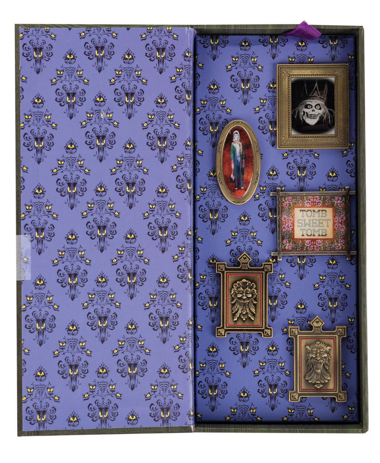 (Disneyland, 2009) A (6) pin set released for the O-Pin House: Afterlife Real Estate event at Disneyland Resort. The (6) pin set replicates five framed pictures and one door knocker in miniature form mounted to a Corridor of Doors-inspired box and was released in an edition of 500. Among the lot are the Popup Ghost, Tomb Sweet Tomb embroidery, and the Ghost Host, and two framed visages. Ranging in size from 1"x.75" to 1.5"x1.25", the pins are in fine condition, packaged within a fine condition box.