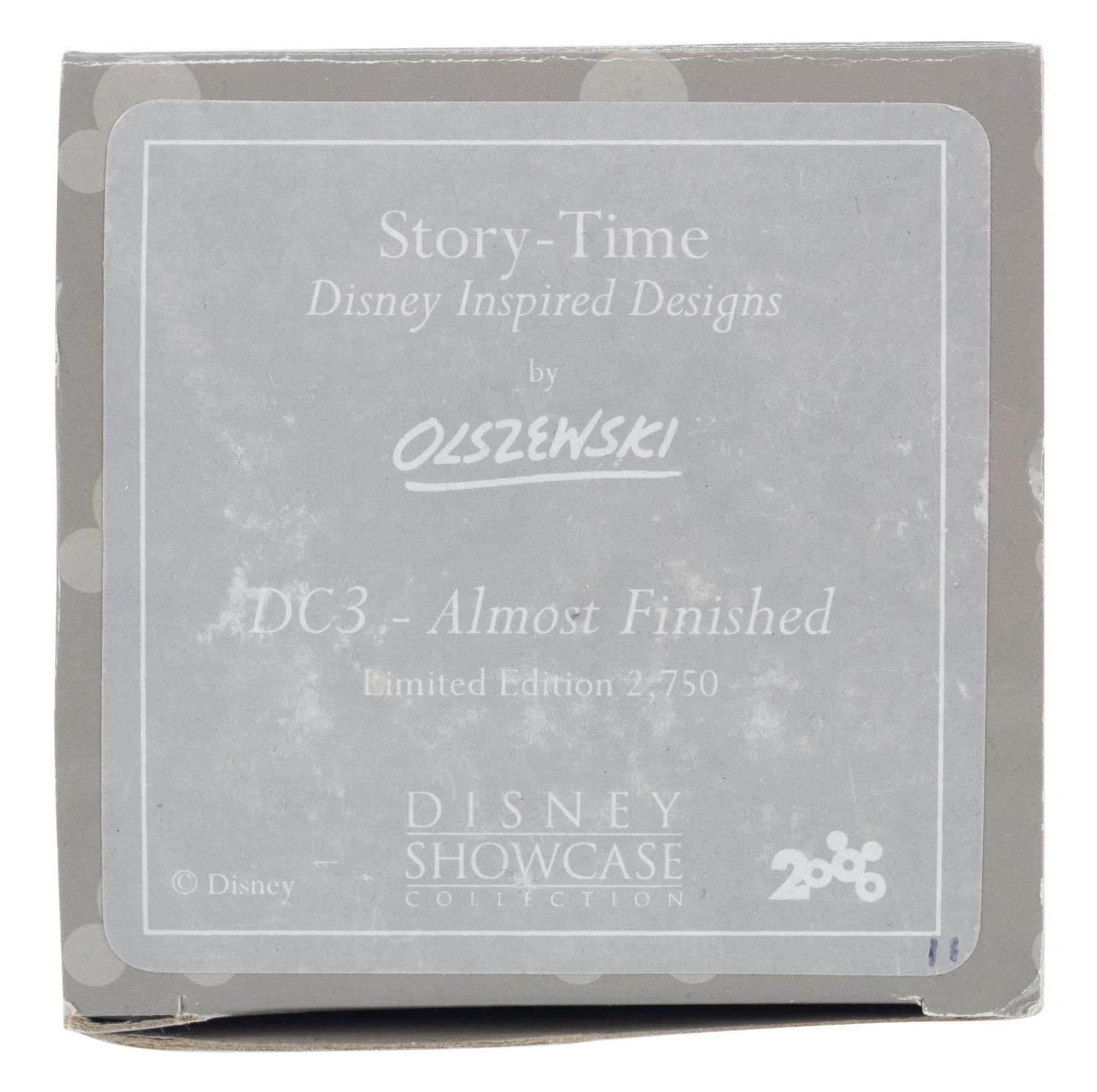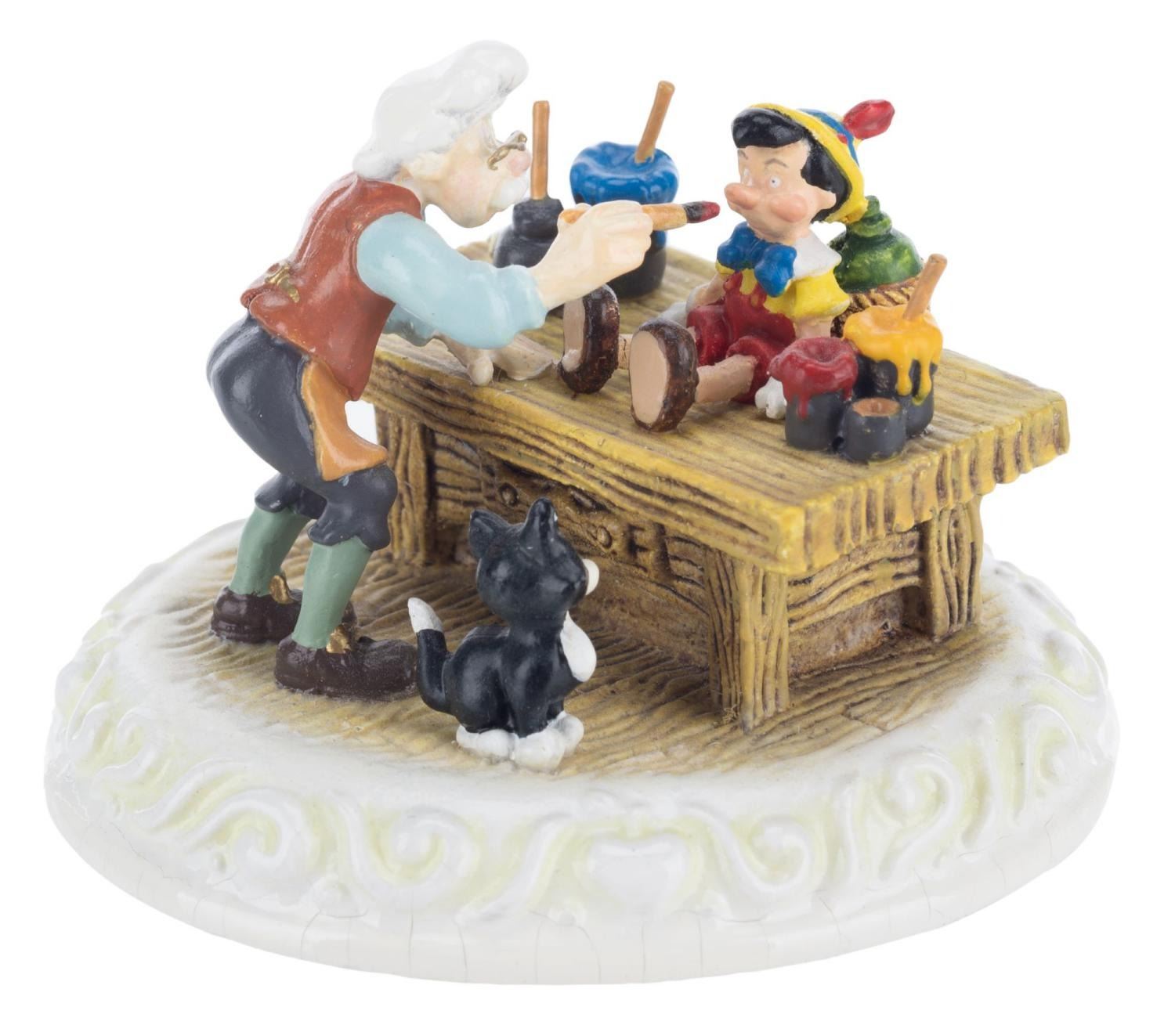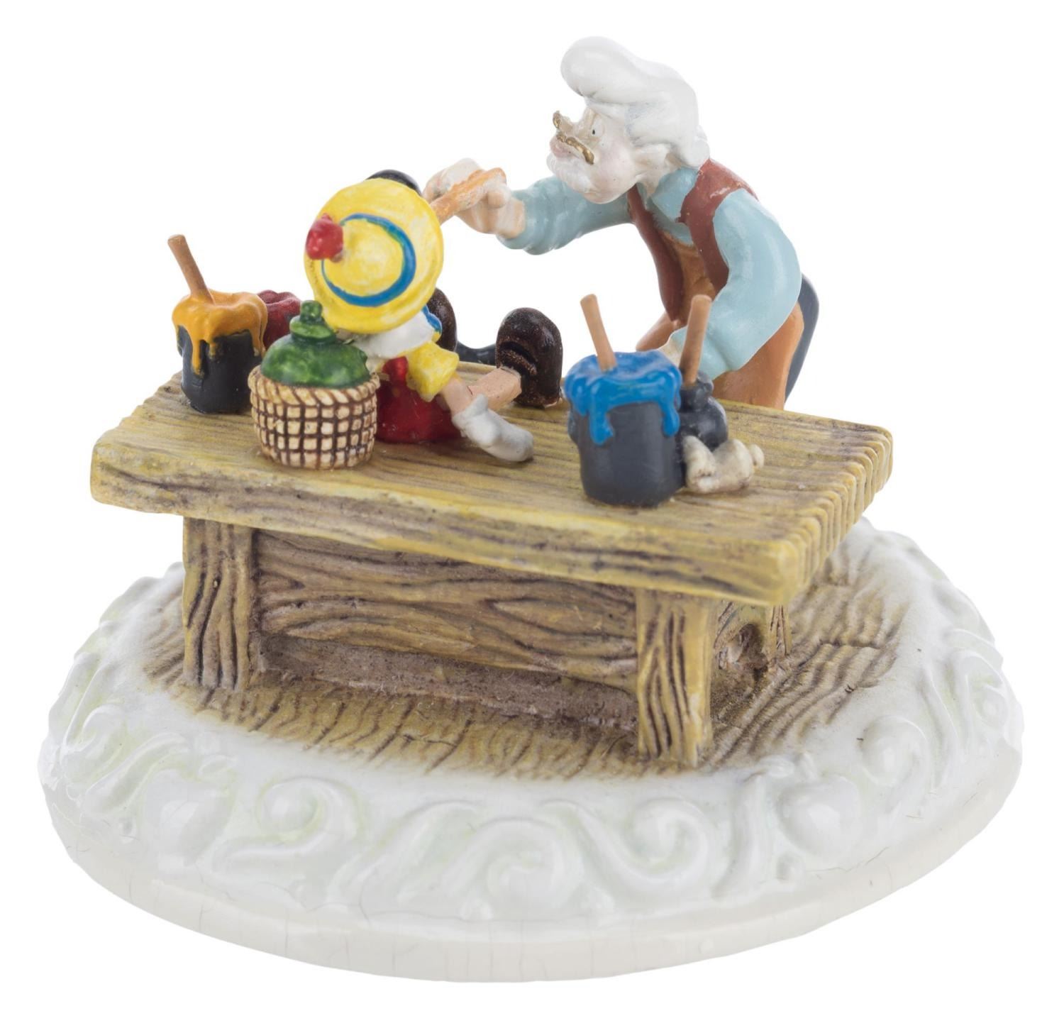 (Disney, 2000) A Disney Showcase Collection “Almost Finished” figurine by Olszewski. Released in a limited edition of 2750, the figurine features Geppetto putting the finishing touches on Pinocchio as Figaro supervises. Olszewski signed the bottom of the base in black marker. Measuring 2” in diameter and 1.5” tall with its original 3.25" x 3.25" x 2.75" tall box, the figurine is in fine condition.