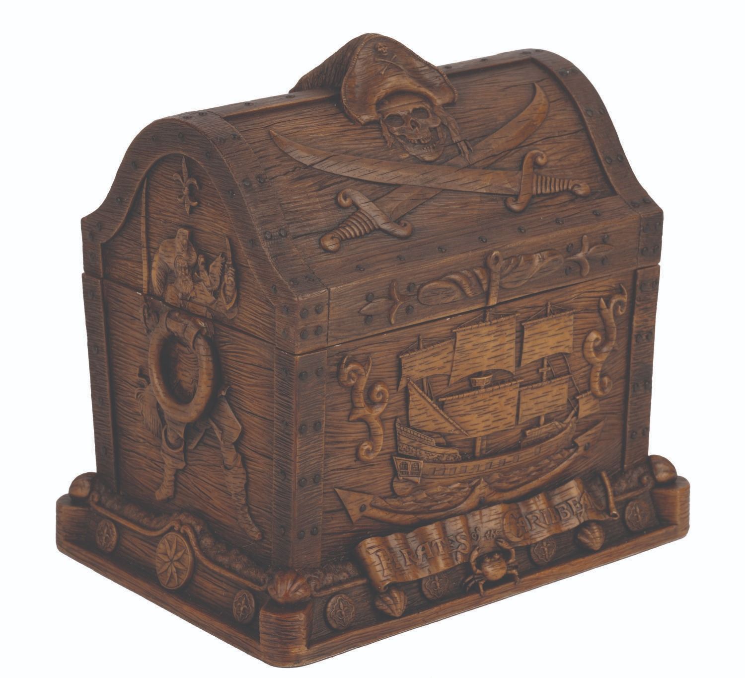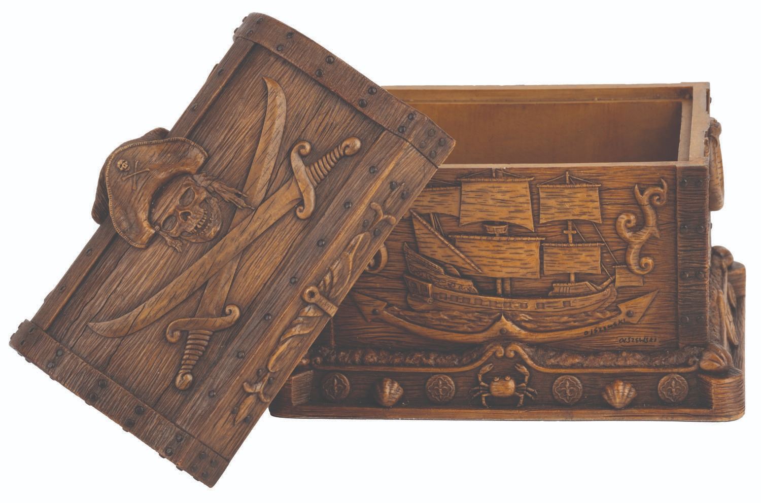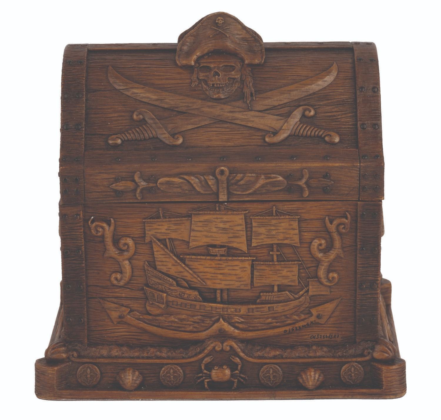 (Disneyland, 2007) A Pirates of the Caribbean treasure chest, designed by Robert Olszewski and released in a limited edition of 1,967 to celebrate the attraction’s 40th anniversary. Measuring 5.25" x 7" x 6.25" tall, the resin chest is in fine condition.