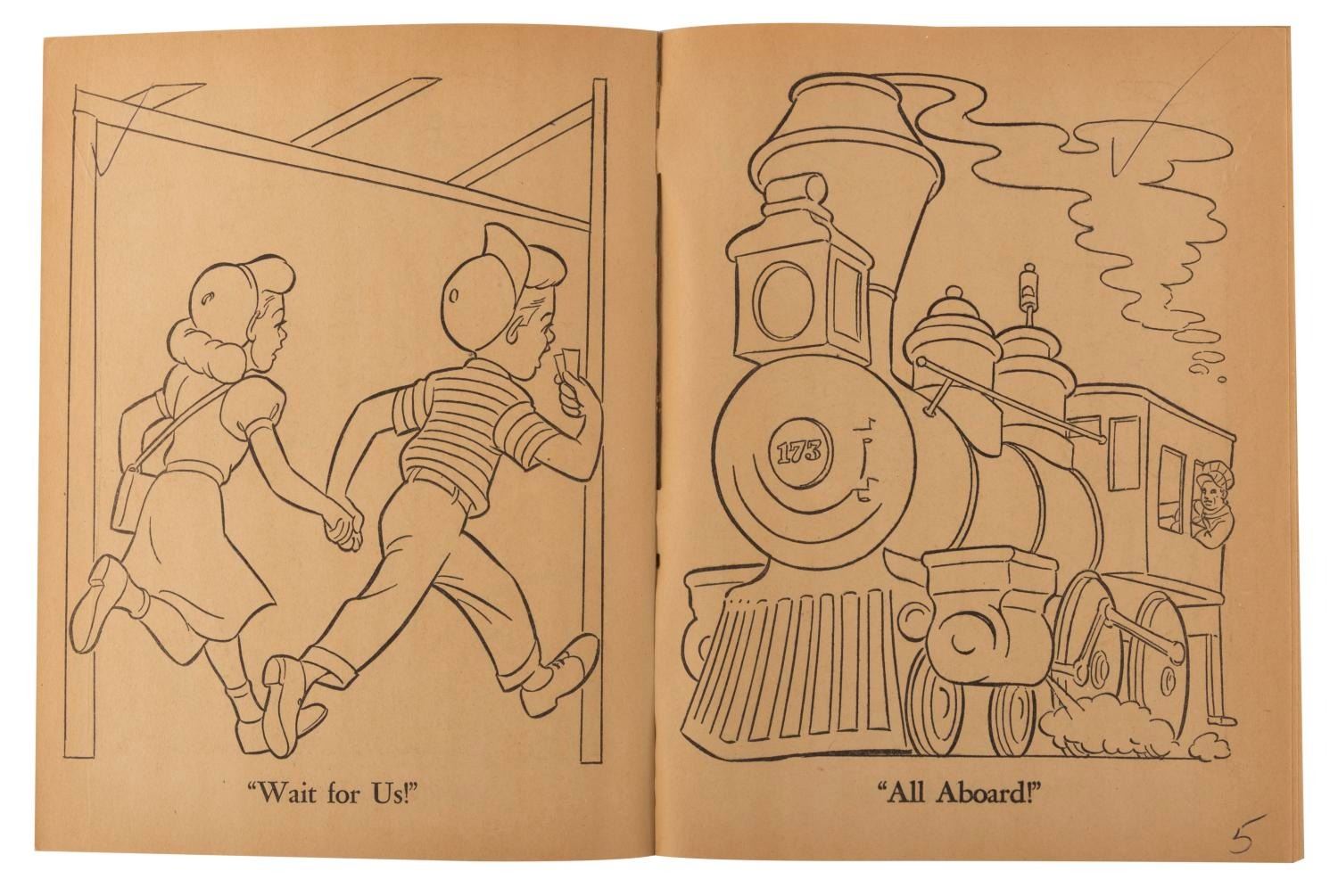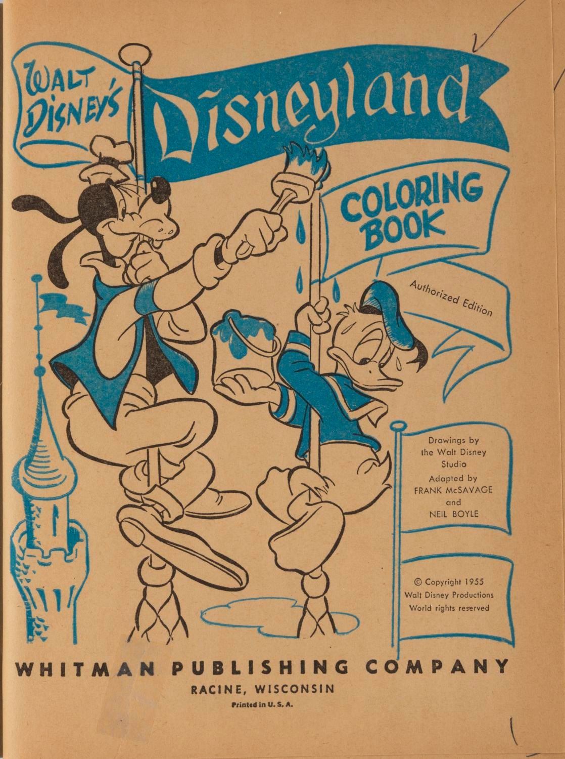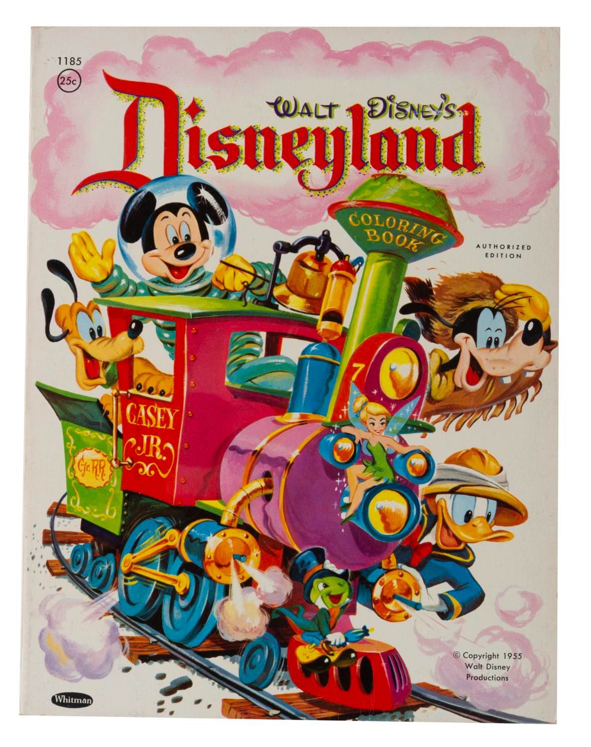 (Whitman, 1955) An early authorized Walt Disney’s Disneyland Coloring Book by Whitman Publishing. The 128-page book is in very good condition with some edge wear and hand-numbering on the pages.