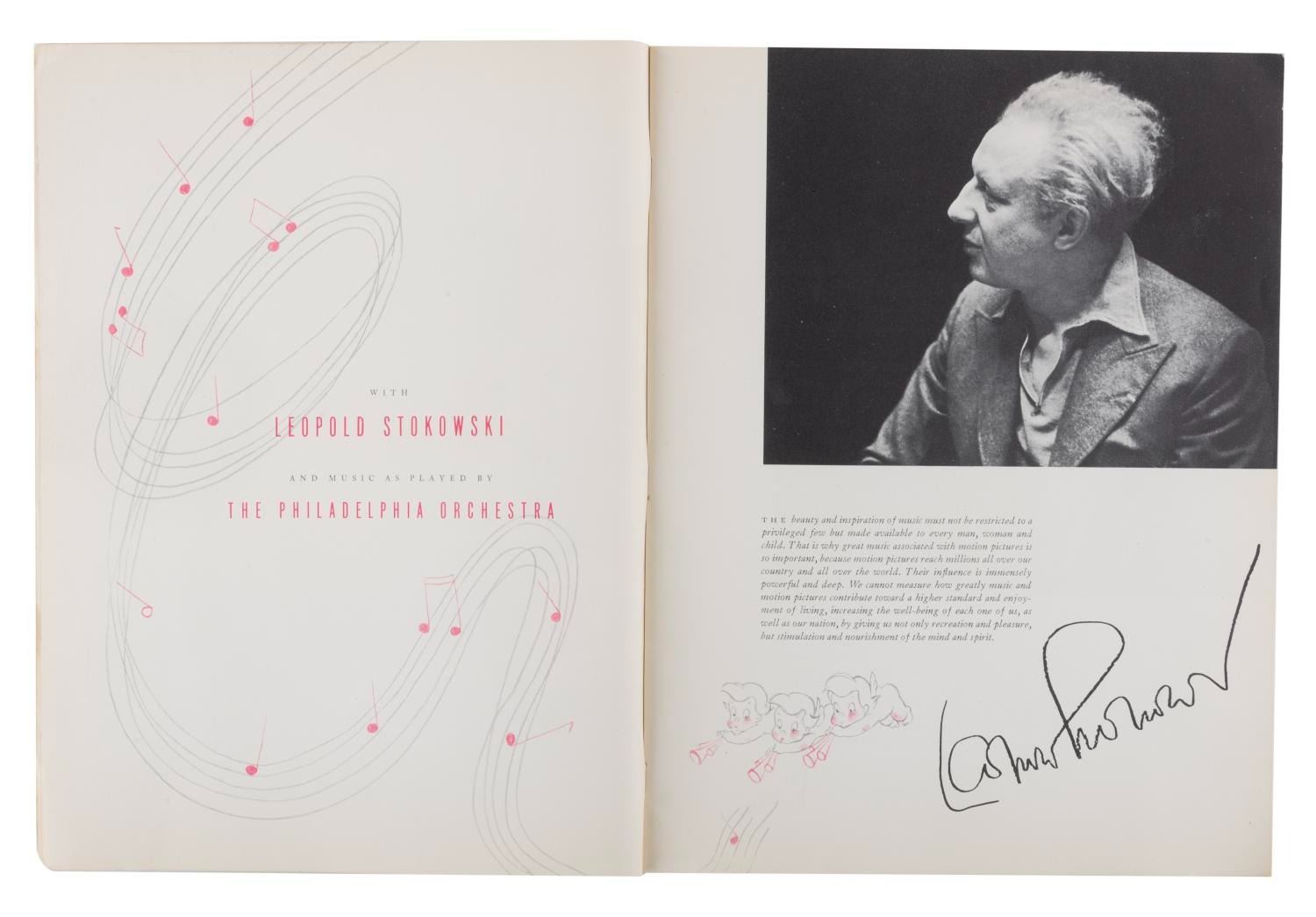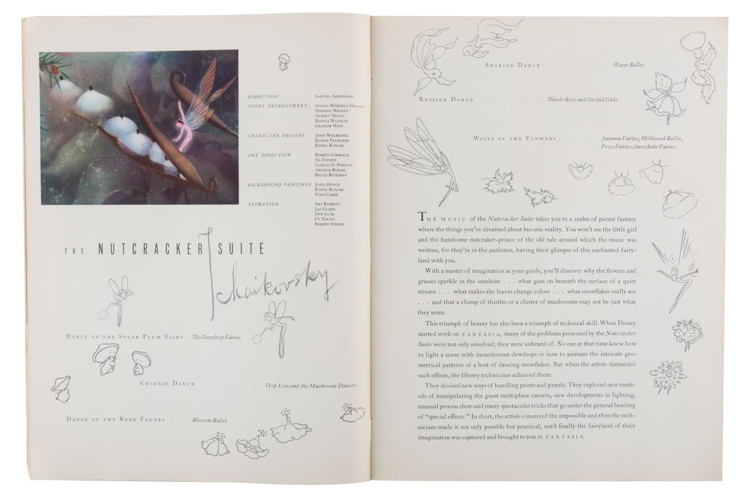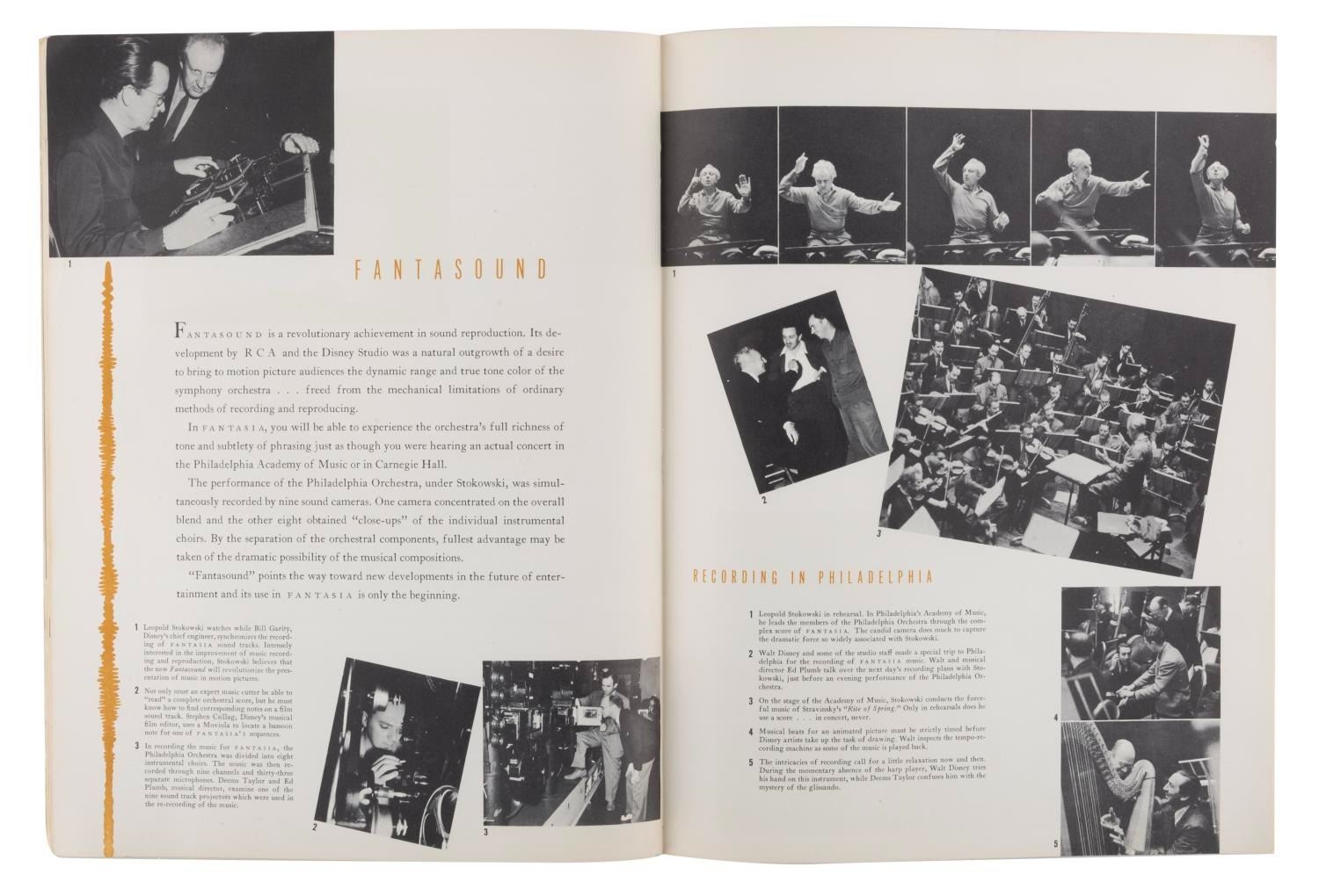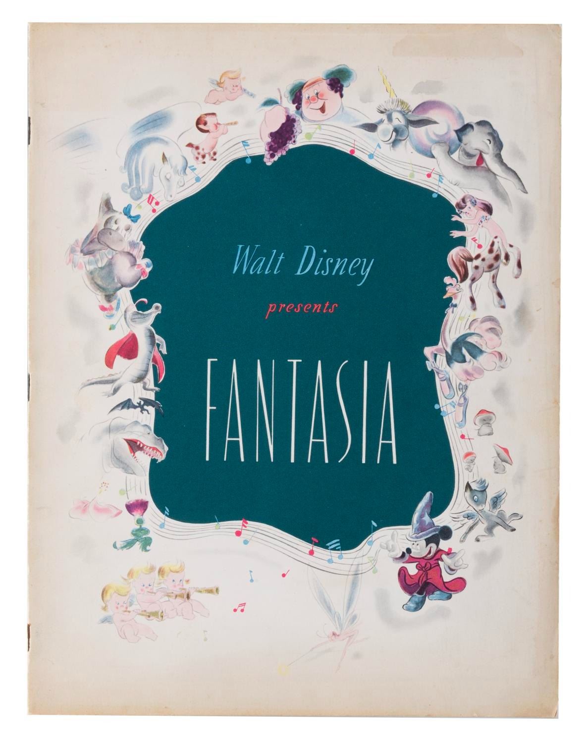 (Disney, 1940) An original “Fantasia” program created for the film’s initial theatrical release. The 28-page program features extensive behind-the-scenes information and background notes on each of the film’s segments, and is illustrated throughout with exclusive set and studio photography, as well as concept art from the film’s development. Measuring 12.75" x 9.75", the program is in very good condition with light wear and discoloration to the cover from age.