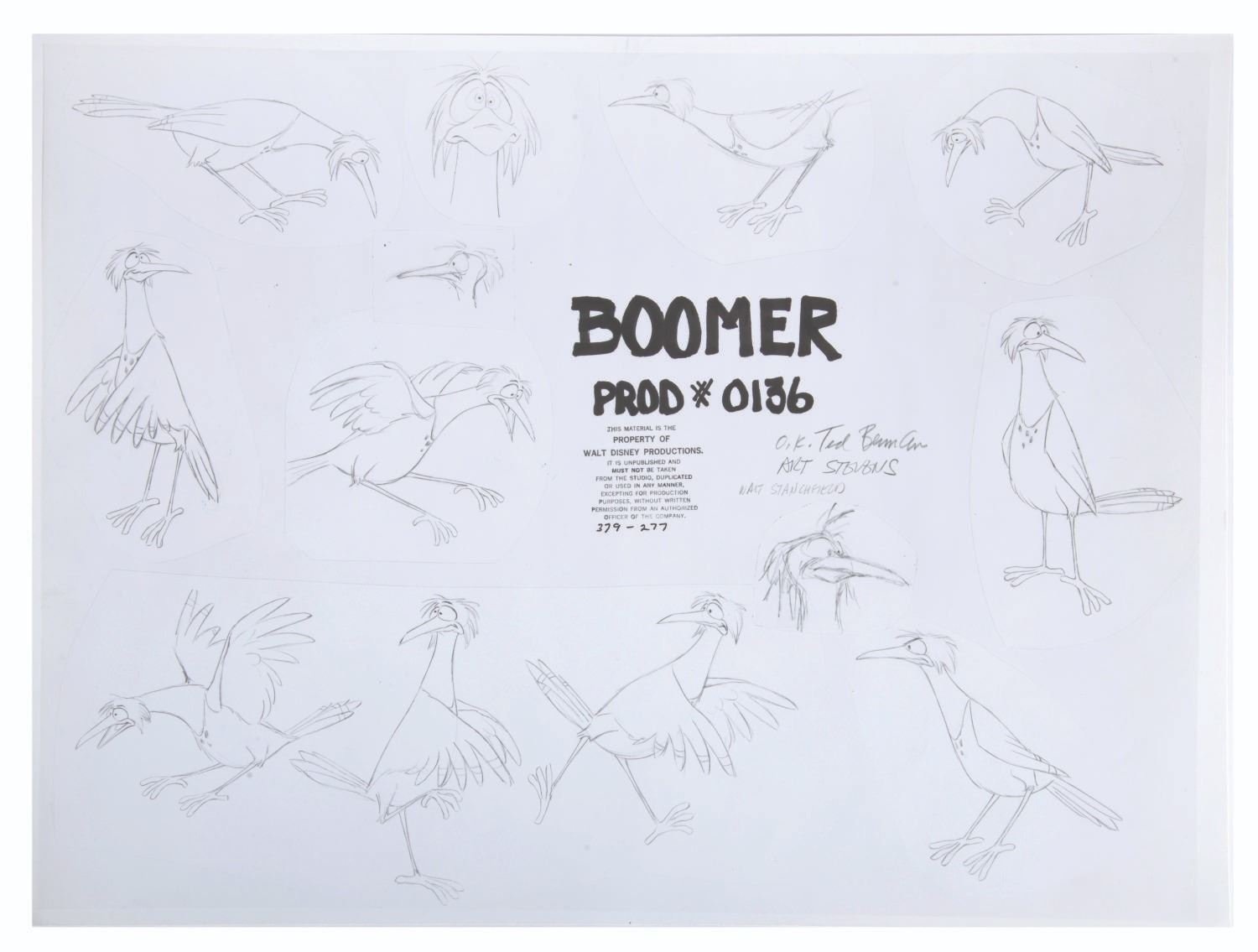 (Disney, 1979) An original photo print model sheet of Boomer from"The Fox and the Hound." Model Sheets like these were used by animators to ensure characters are drawn consistently by all. Measuring 12"x16", the sheet is in very good condition, with light wear.