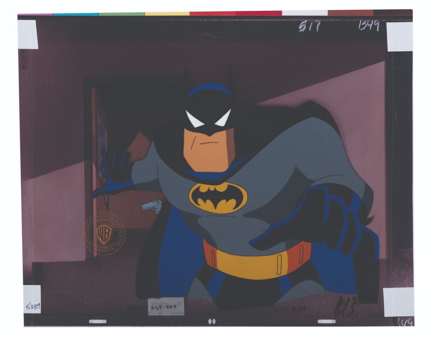 (Warner Bros., 1992) An Original production cel from The Batman: The Animated Series first season episode "Two-Face Part II." This untrimmed cel measures 10.25"x12.5" with an image size of 8.5"x10". The cel has been placed on a color copy background, and is in fine condition with its original Warner Bros. Certificate of Authenticity.