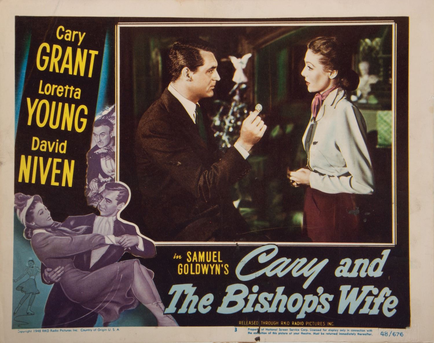 (RKO, 1952) An original release lobby card for RKO's 1952 classic film, "The Bishop's Wife." Measuring 11"x14", the lobby card is in good condition, with yellowing and slight wear to edges and corners.