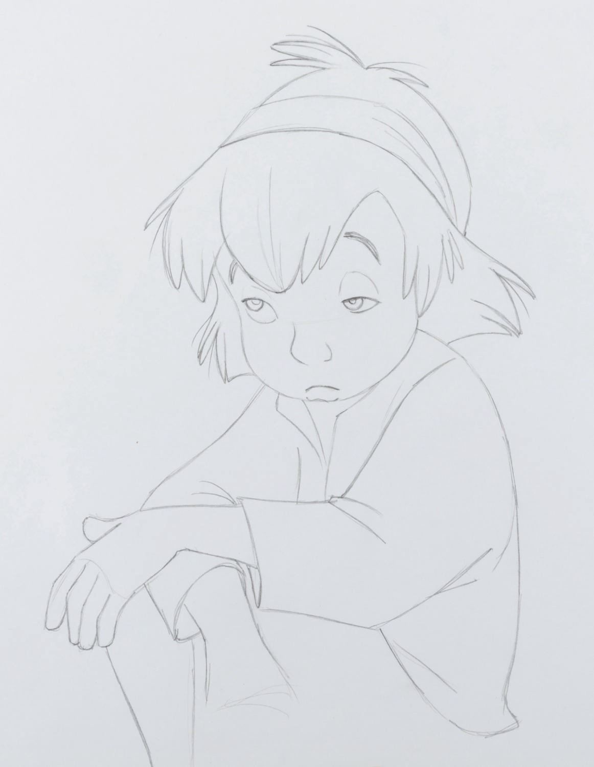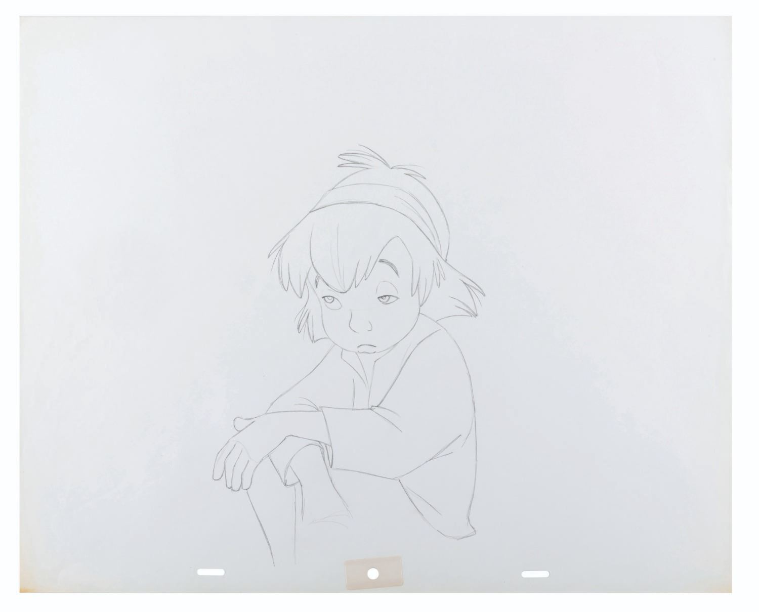 (Disney, 1978) An original production drawing of the Boy from “The Small One.” Accomplished in pencil, the image measuring 6.25” x 9.25” on 12.5” x 15.5” animation paper is in very good production-used condition with light discoloration to the paper’s edges from age.