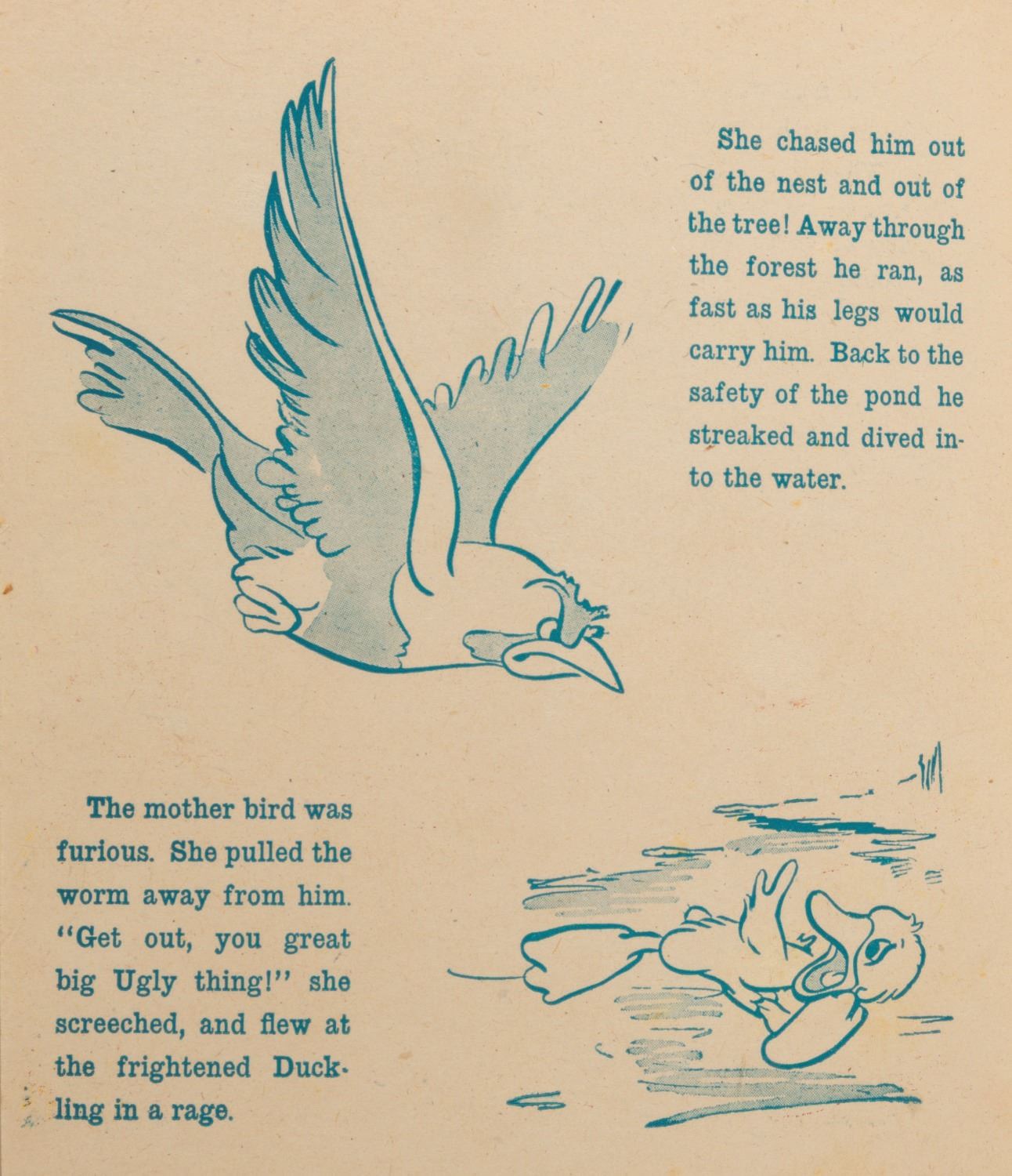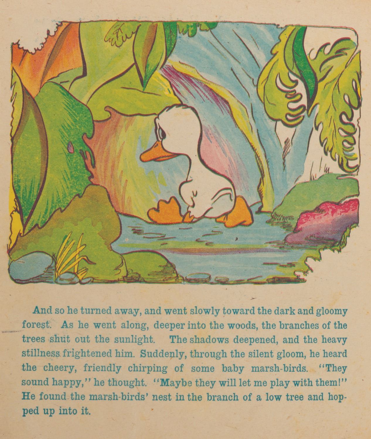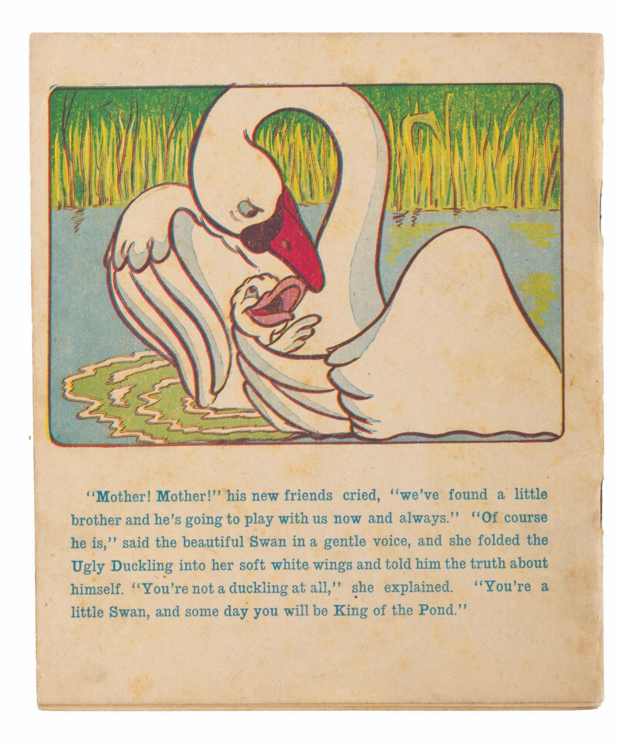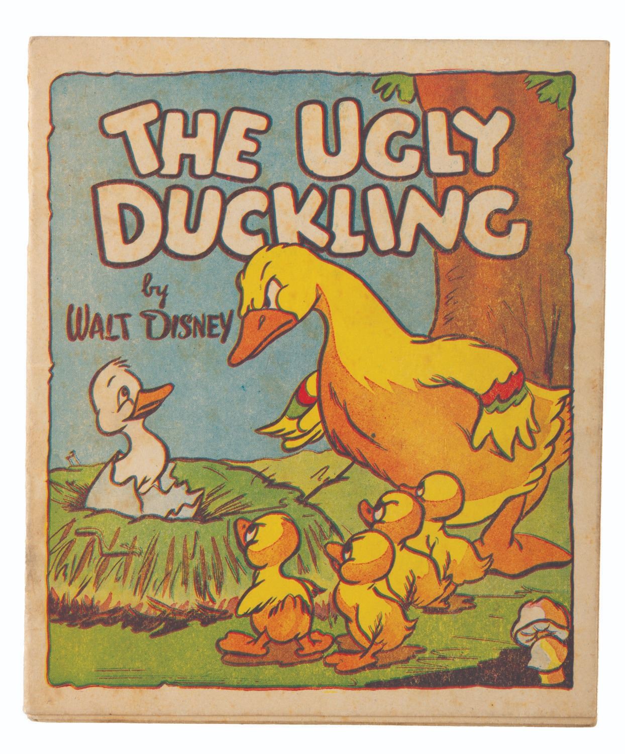 (Collins, 1930s-40s) A rare children's storybook based on Walt Disney's Silly Symphony short "The Ugly Duckling." Measuring 6.5" x 7.5", the softcover book is in good condition with spotting, wear, and discoloration from age.