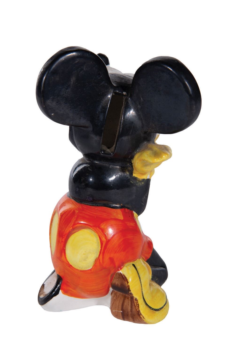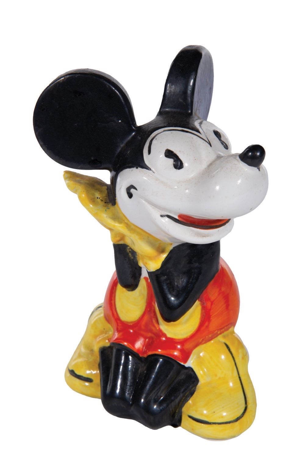 (Faiencerie d' Onnaing, 1930s) An extremely rare 6" tall ceramic bank made in France by Faiencerie d' Onnaing in the 1930s as part of a series that included Pluto and Horace Horsecollar. Mickey is in very good condition with excellent paint and no cracking or crazing. The company name along with "Made In France" is on the underside. A great example of a very rare piece.