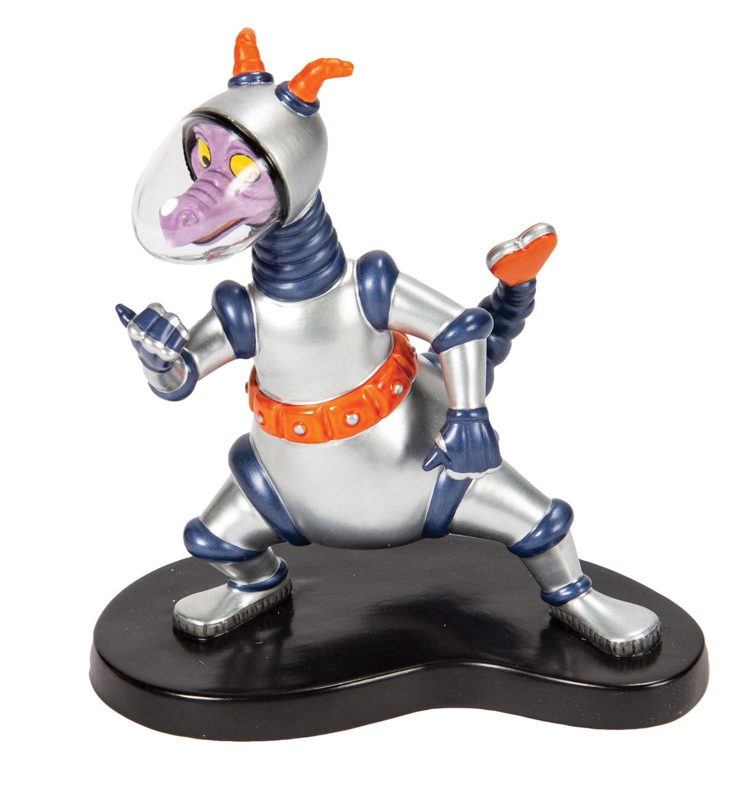 (Epcot, 2005) An artist’s proof for the ceramic figure of Figment by artist Jacqueline Perreault Gonzales from the Walt Disney Classics Collection. Inspired by Epcot’s Journey into Imagination, Figment wears an astronaut uniform and is exquisitely hand-painted in full color. The figure is signed by Gonzales on the bottom of the integral base and numbered AP 1/5. The piece is accompanied by a Certificate of Authenticity and its original cardboard box packaging. Measuring 6.5”x6” and 4.25” deep, the figure is in fine condition being as-new.