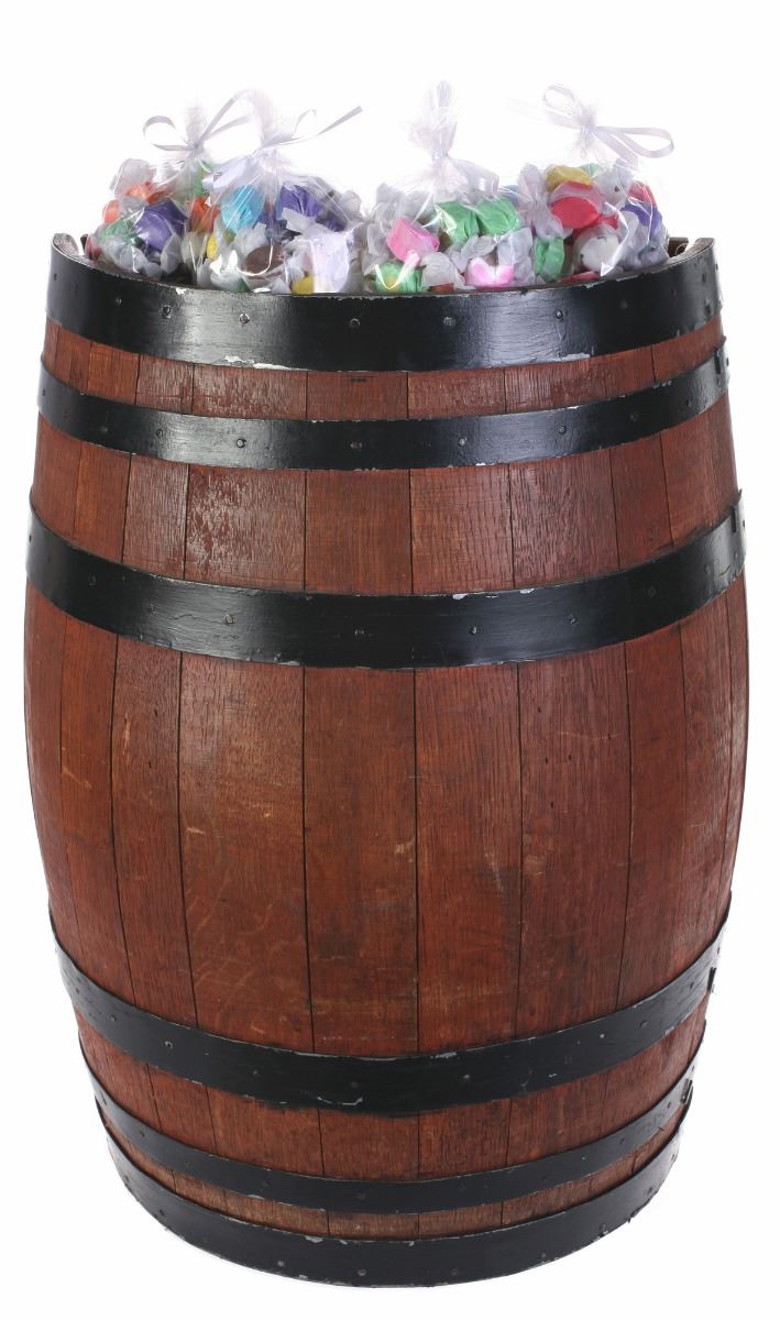 (Disneyland, 1970s) Beautiful half-barrel used to display merchandise in the Market House on Main Street. Measures approximately 24" tall. In fine condition with light wear from use.